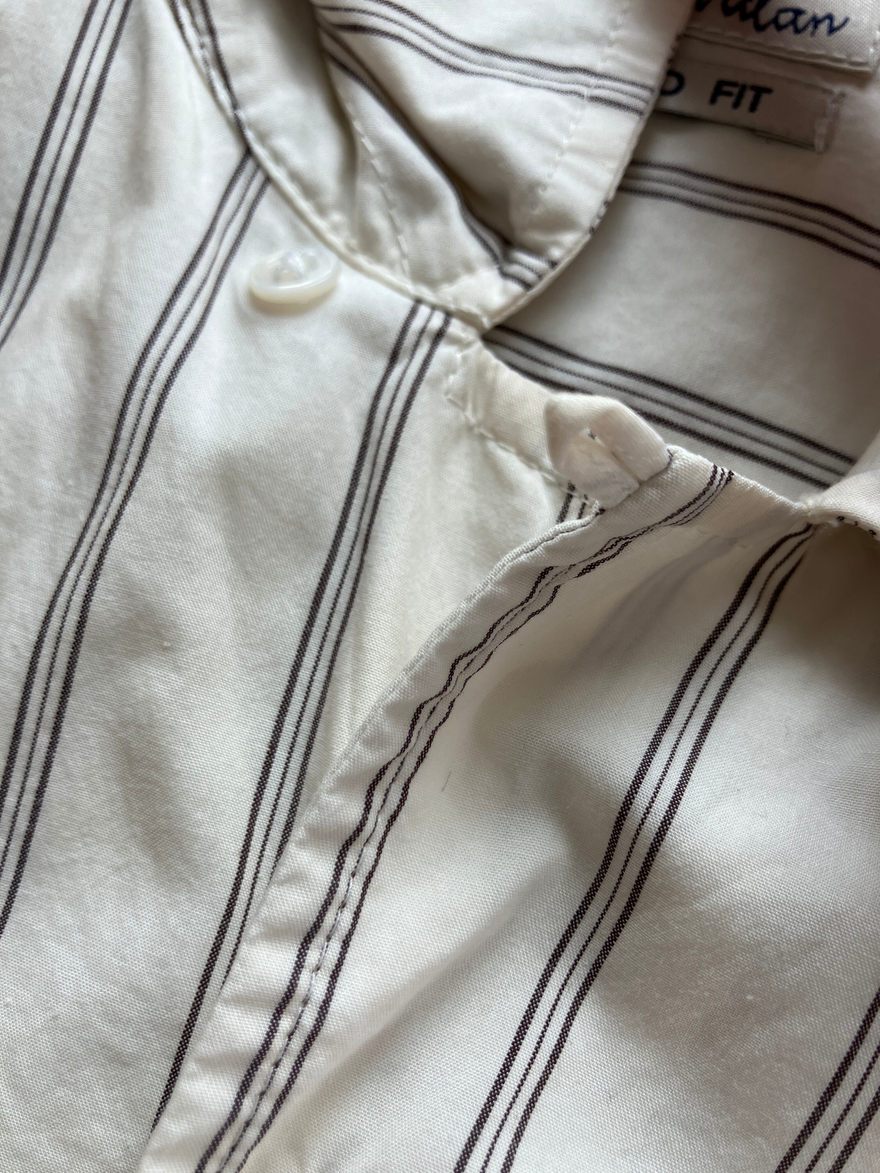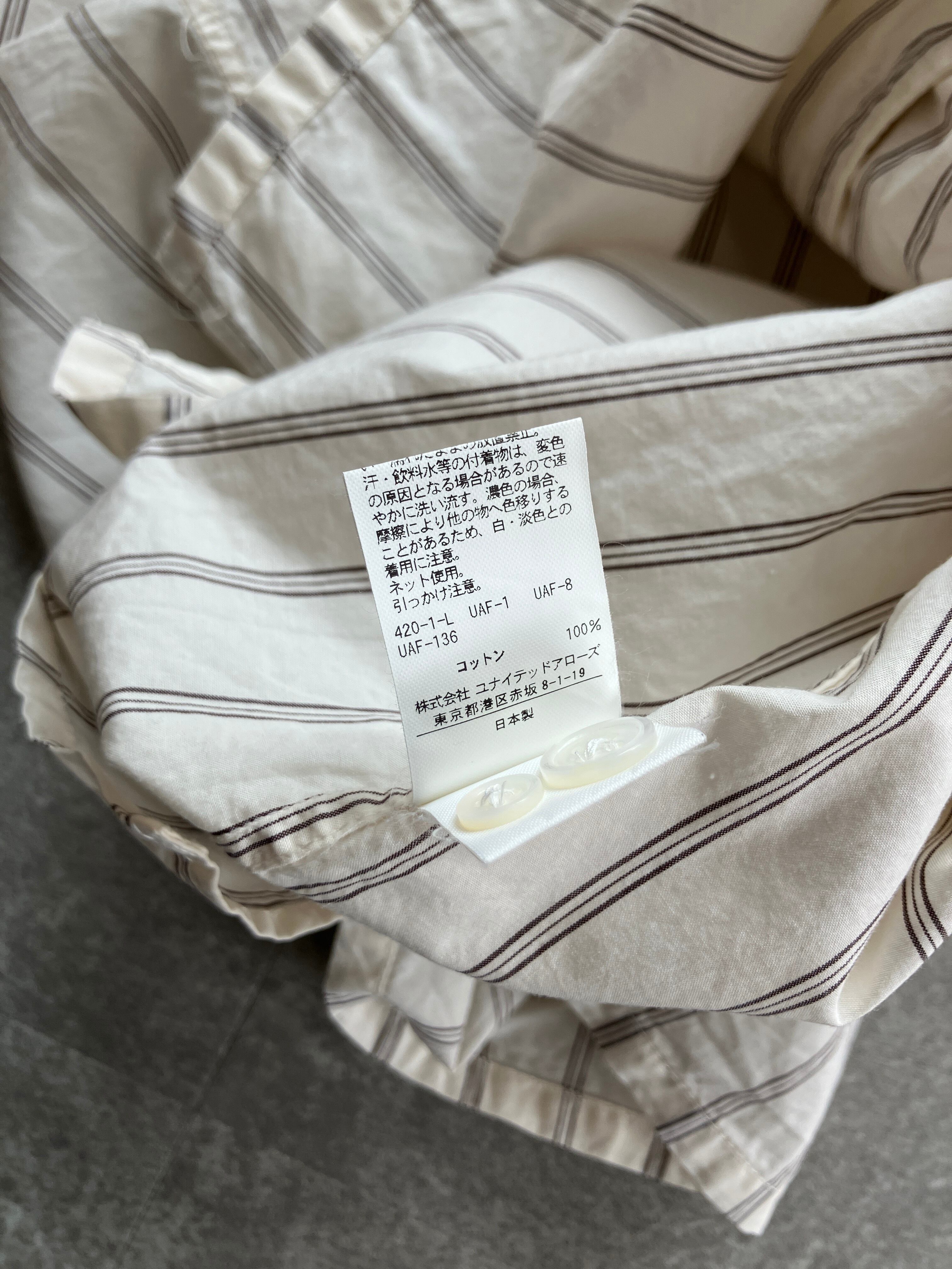 今回は2色のご紹介、①白と茶色のストライプ(白ベース)、②くすんだブルーと白のストライプ(ブルーベース)