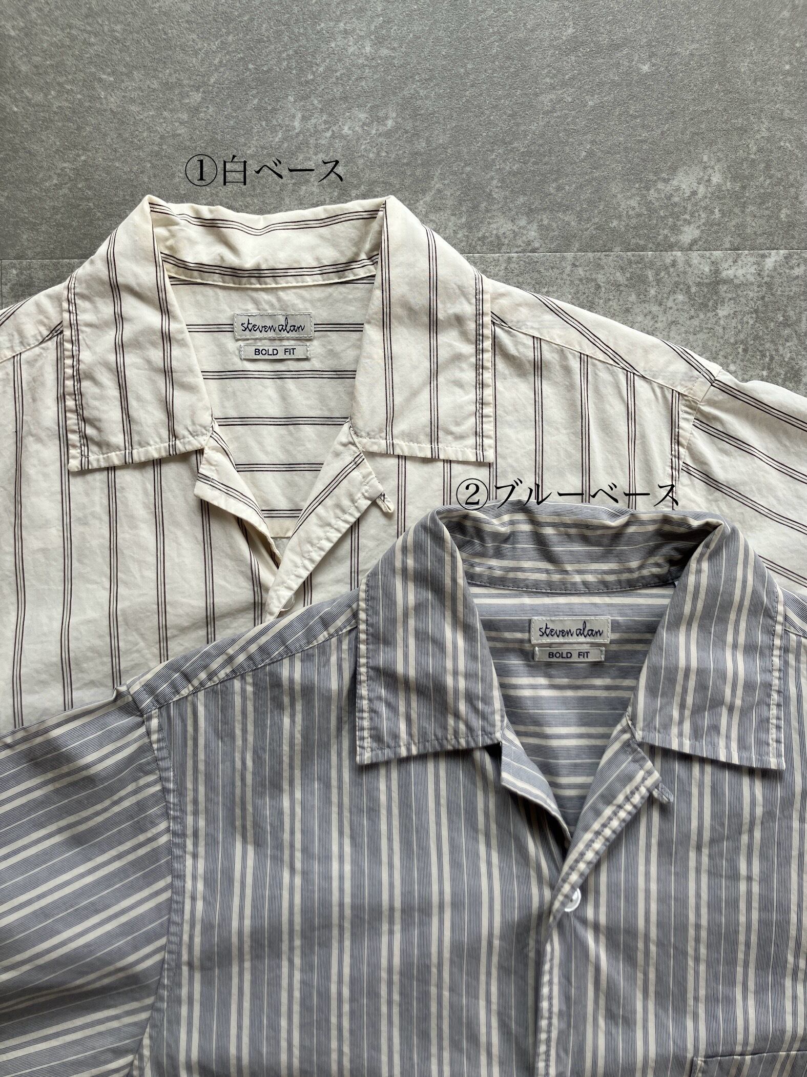 同シャツは、BOLD FITというモデルで、柄含め少し古着ライクな面構え、古着との相性も良さそうです