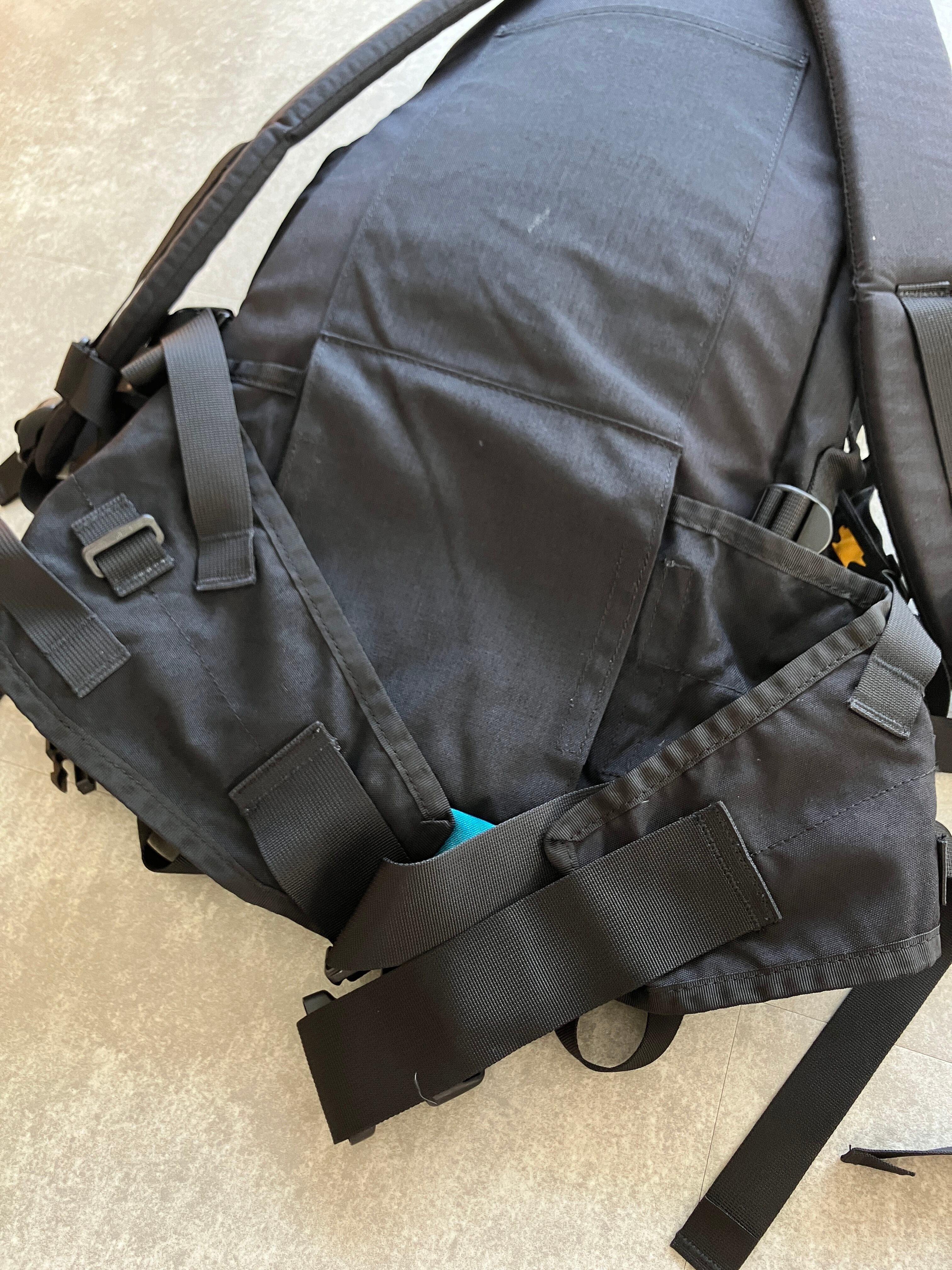 本体にはアジャスタブルなベルトが複数付いてますので、荷物容量に合わせて可変してもらえば、積載容量も変わりますし、表情も変化し様々なシルエットを楽しんでいただけます