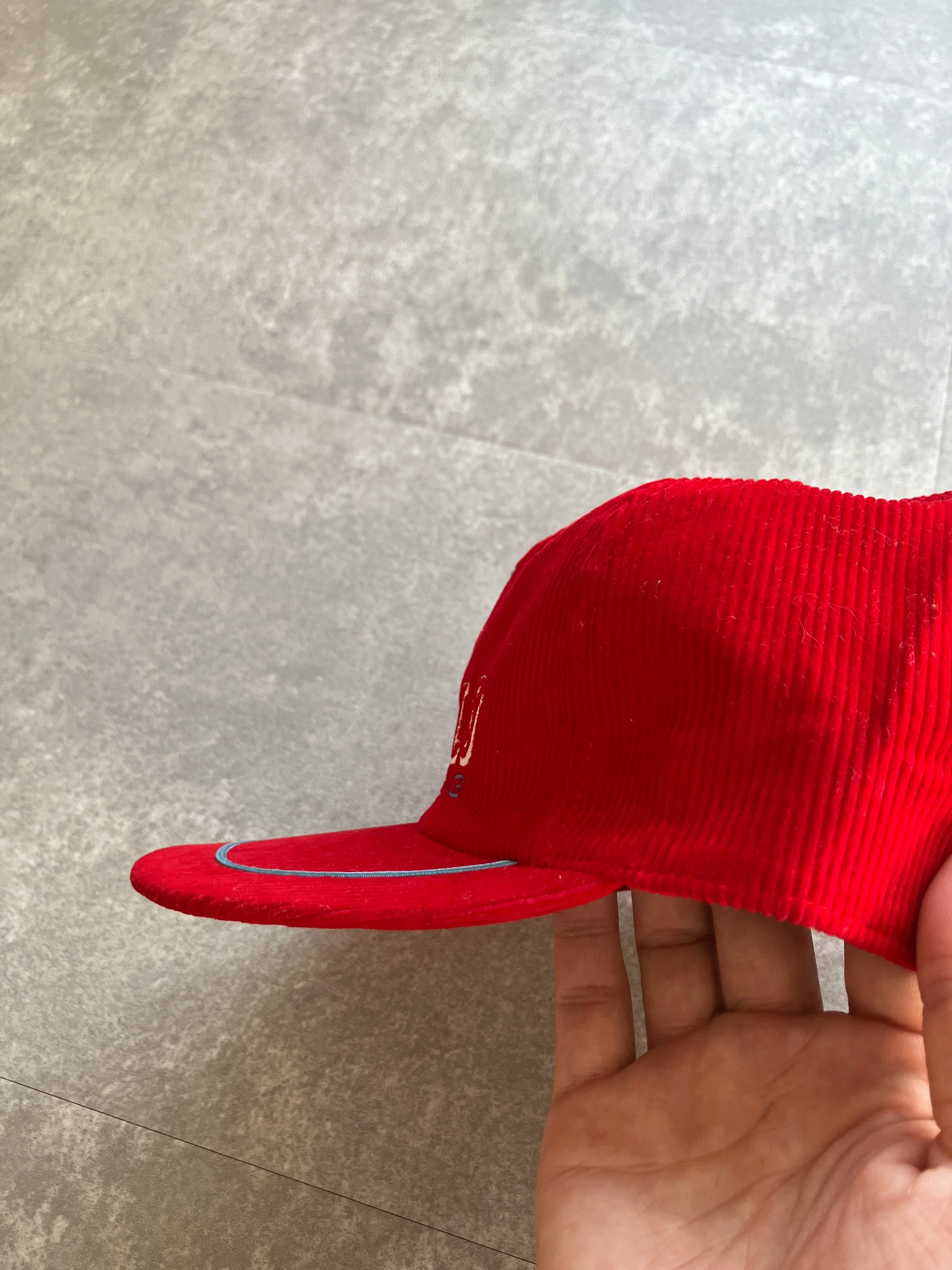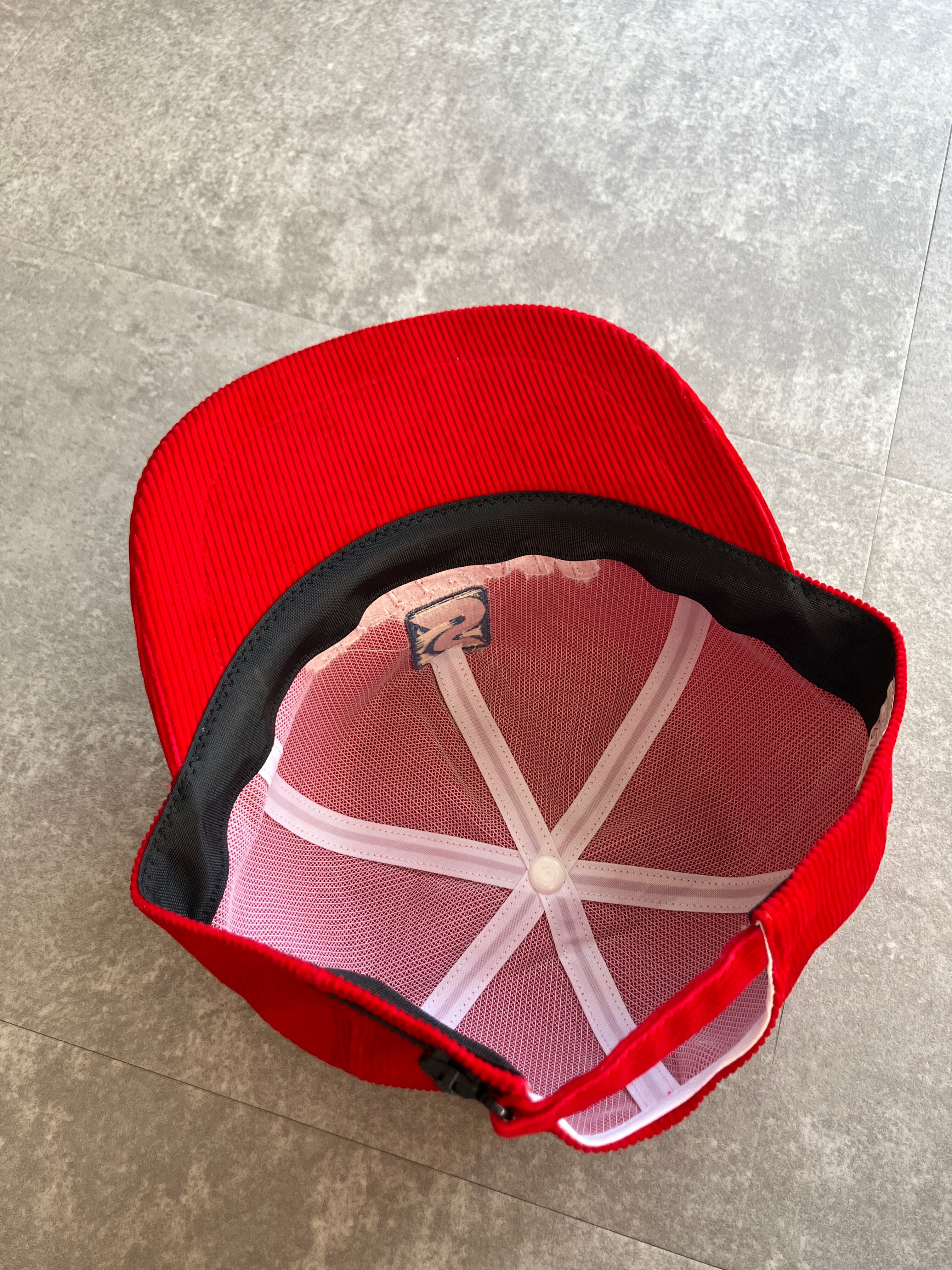 刺繍&3連の刺繍デザインが秀逸ですし、アウトラインのみ刺繍されたテキストフォントもかっこいい、細畝のコーデュロイ(コットン素材)も最高です
