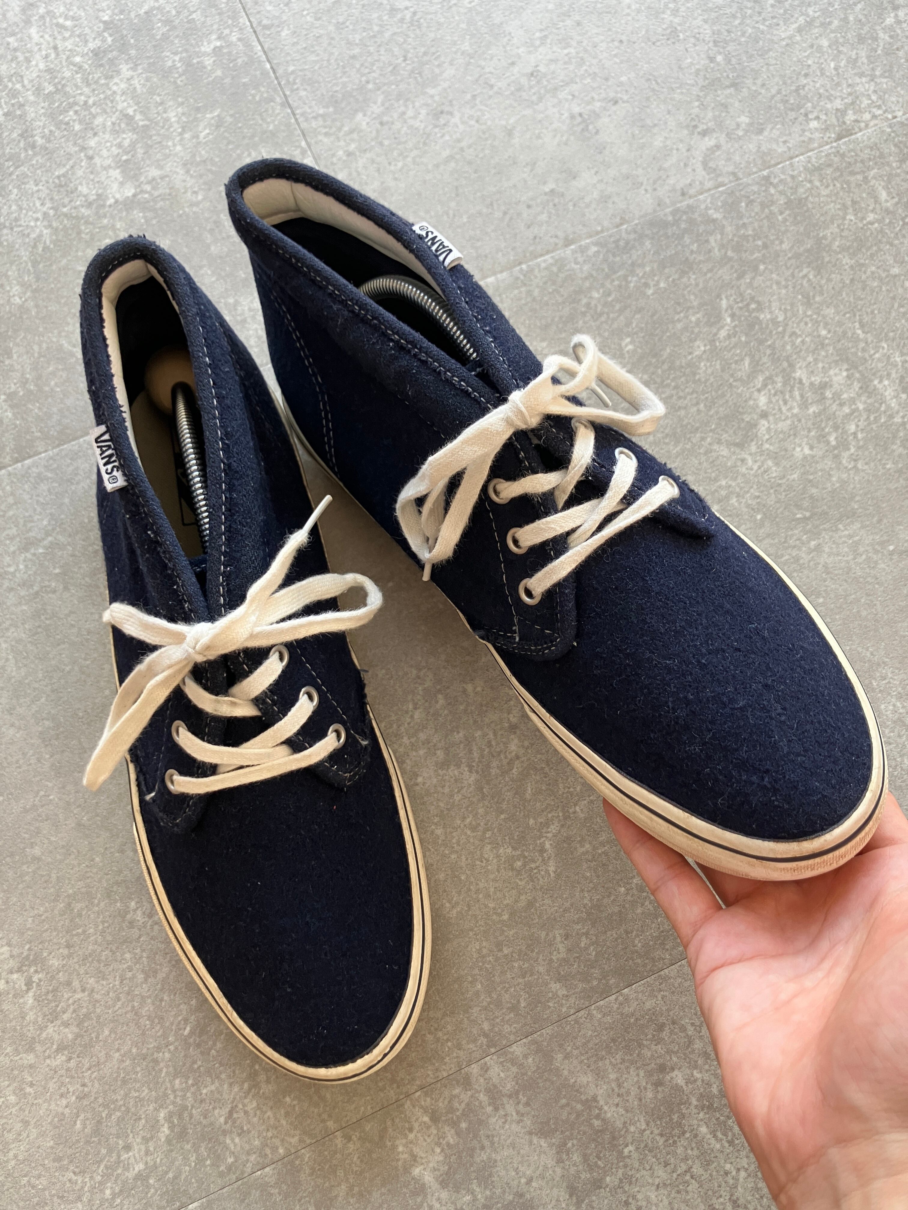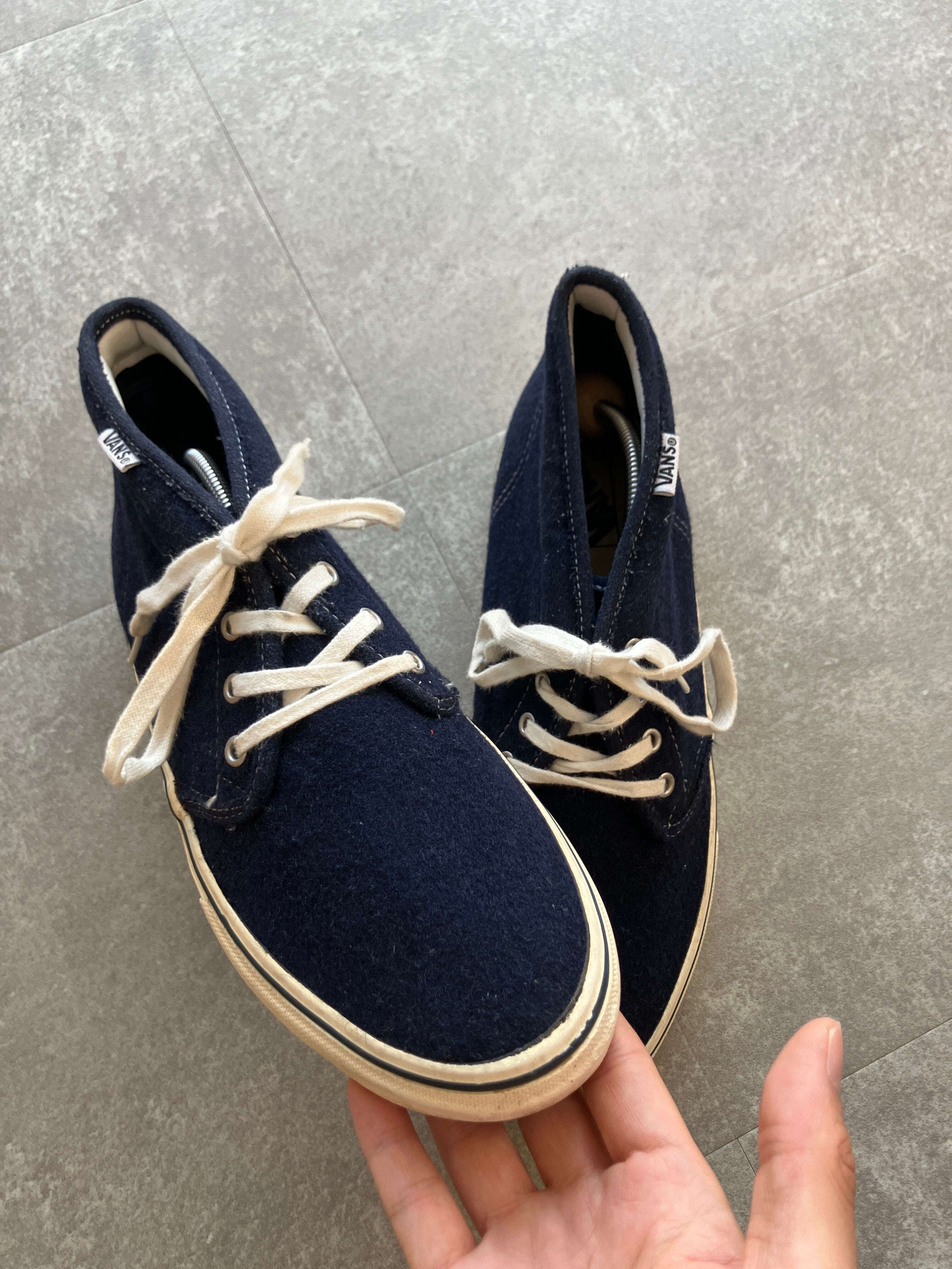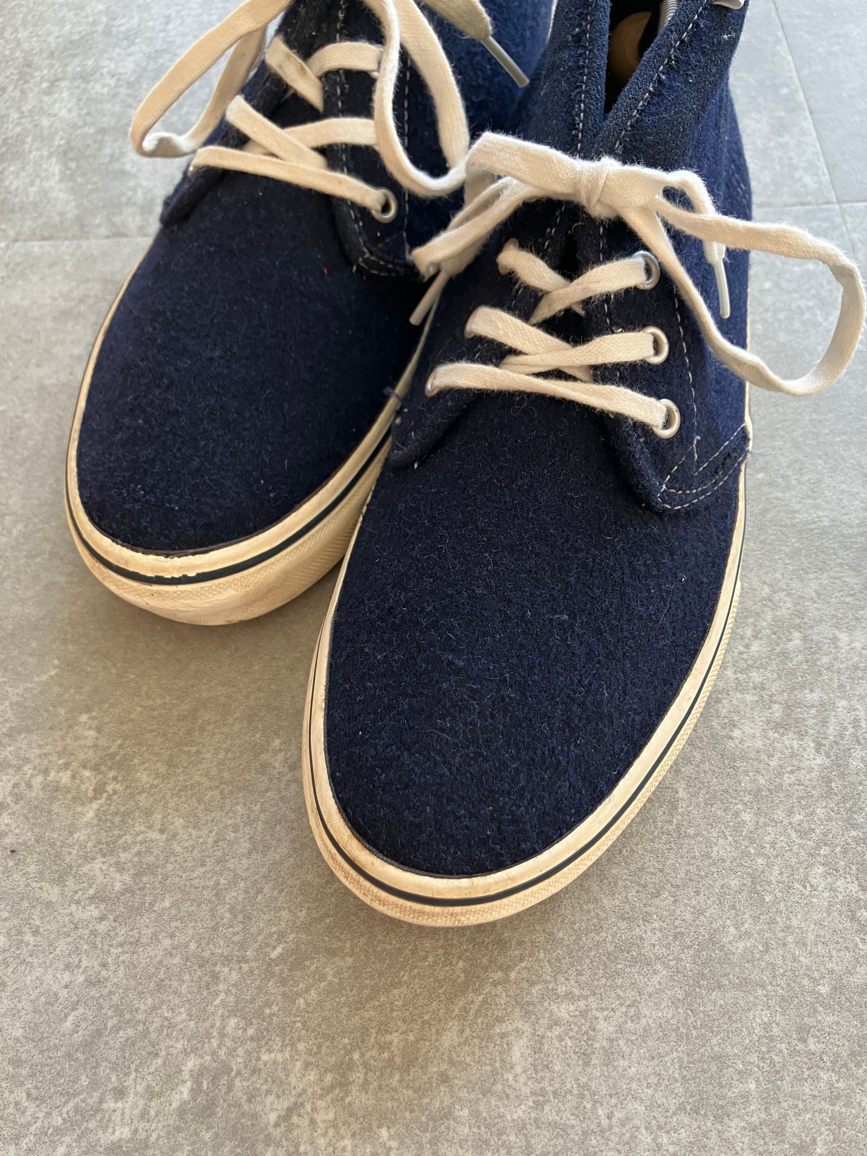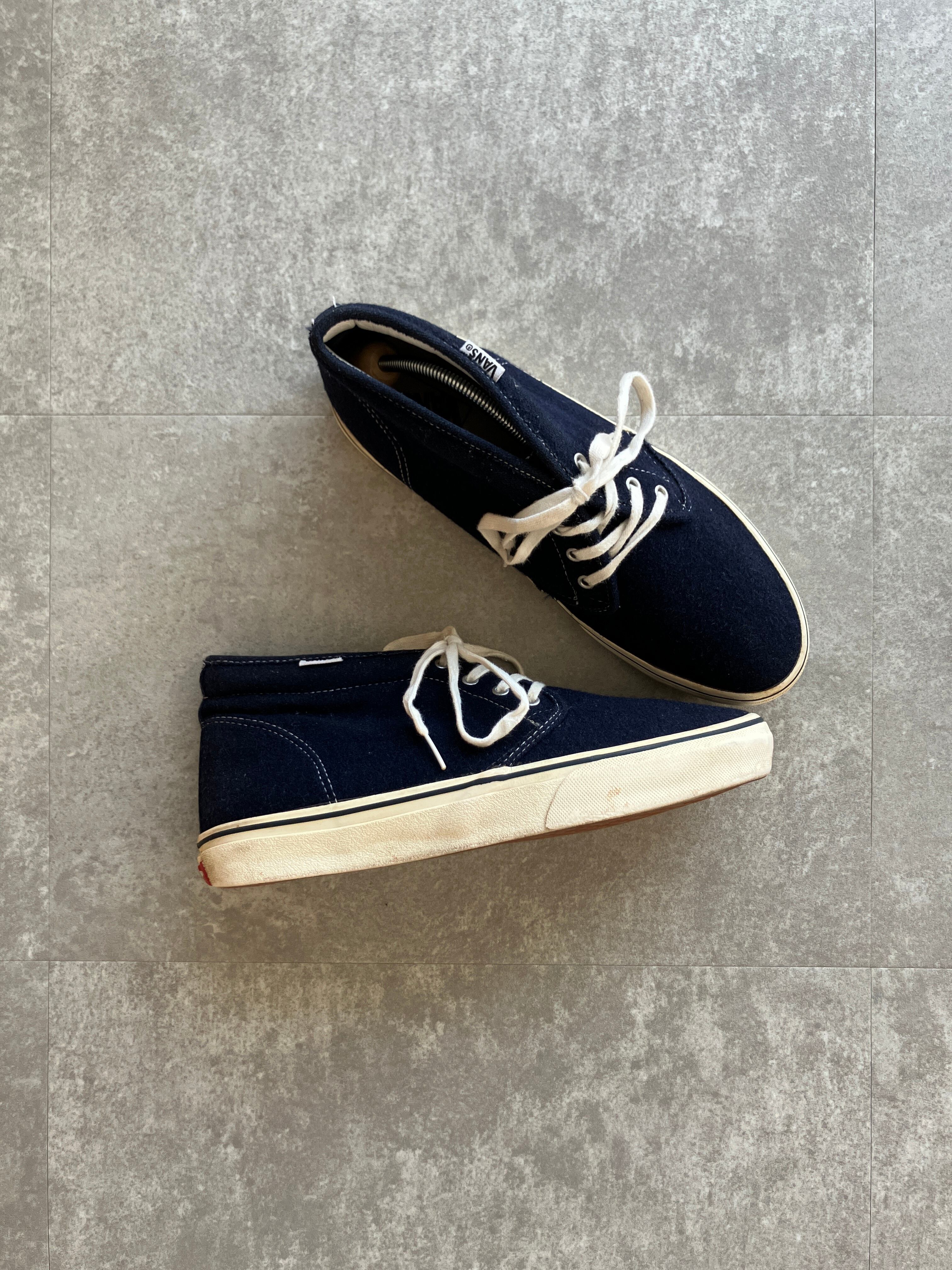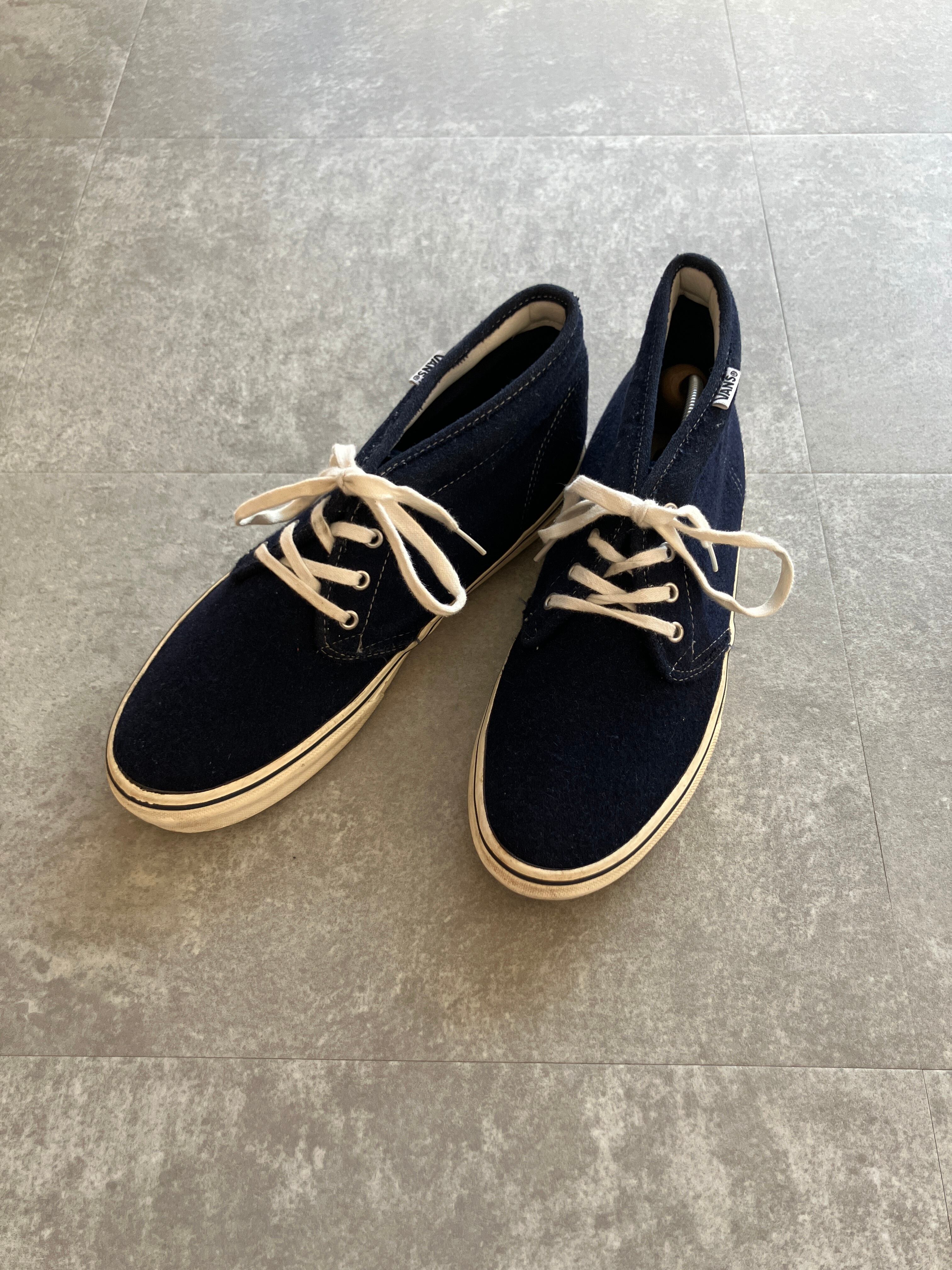 綺麗なネイビーカラーに、ウール素材、そしてチャッカは、靴紐はきつめに縛っていただきたいので、サイズ28.0cmですと、多く方にかっこよく履いていただけるかと思っております