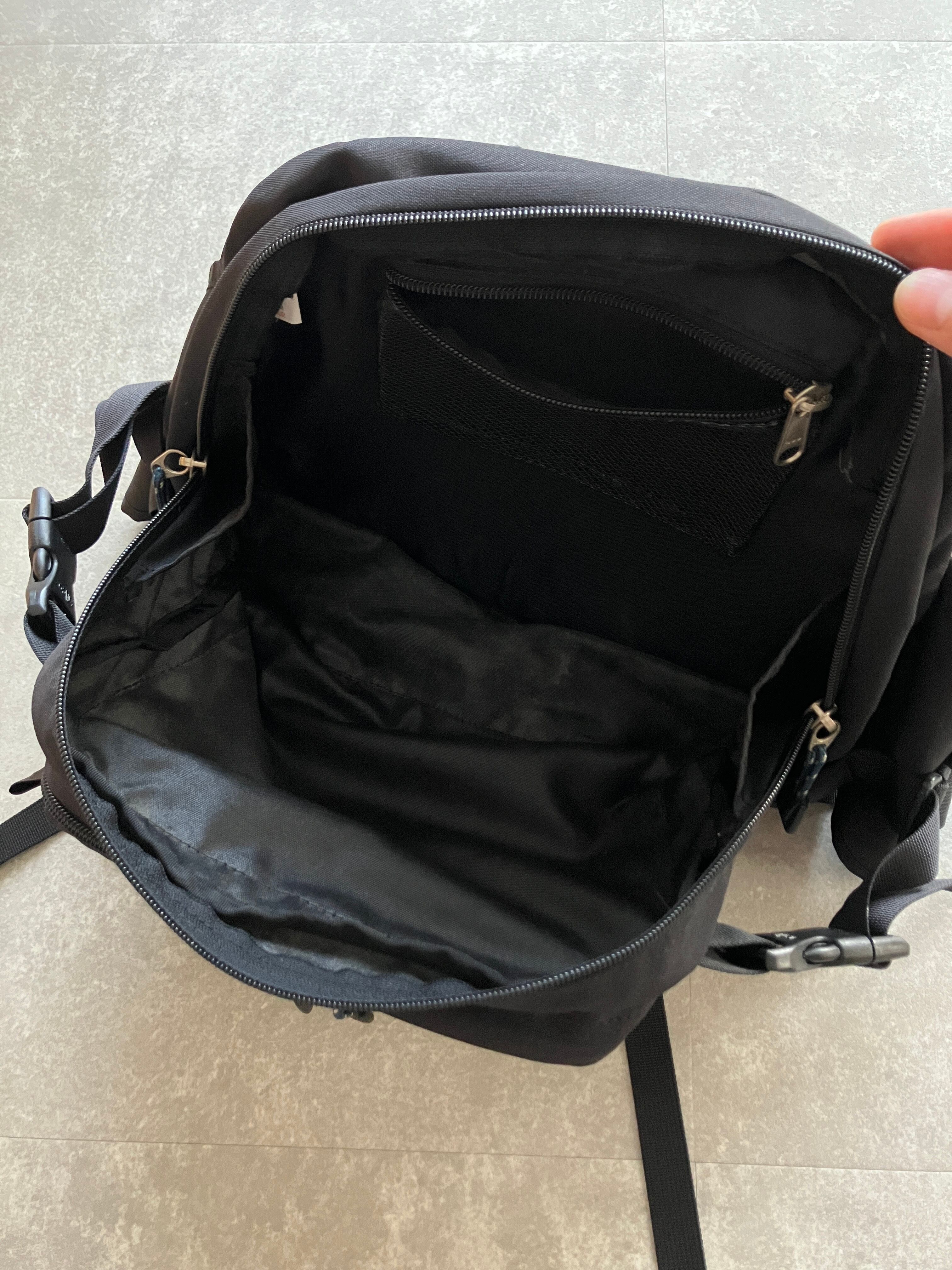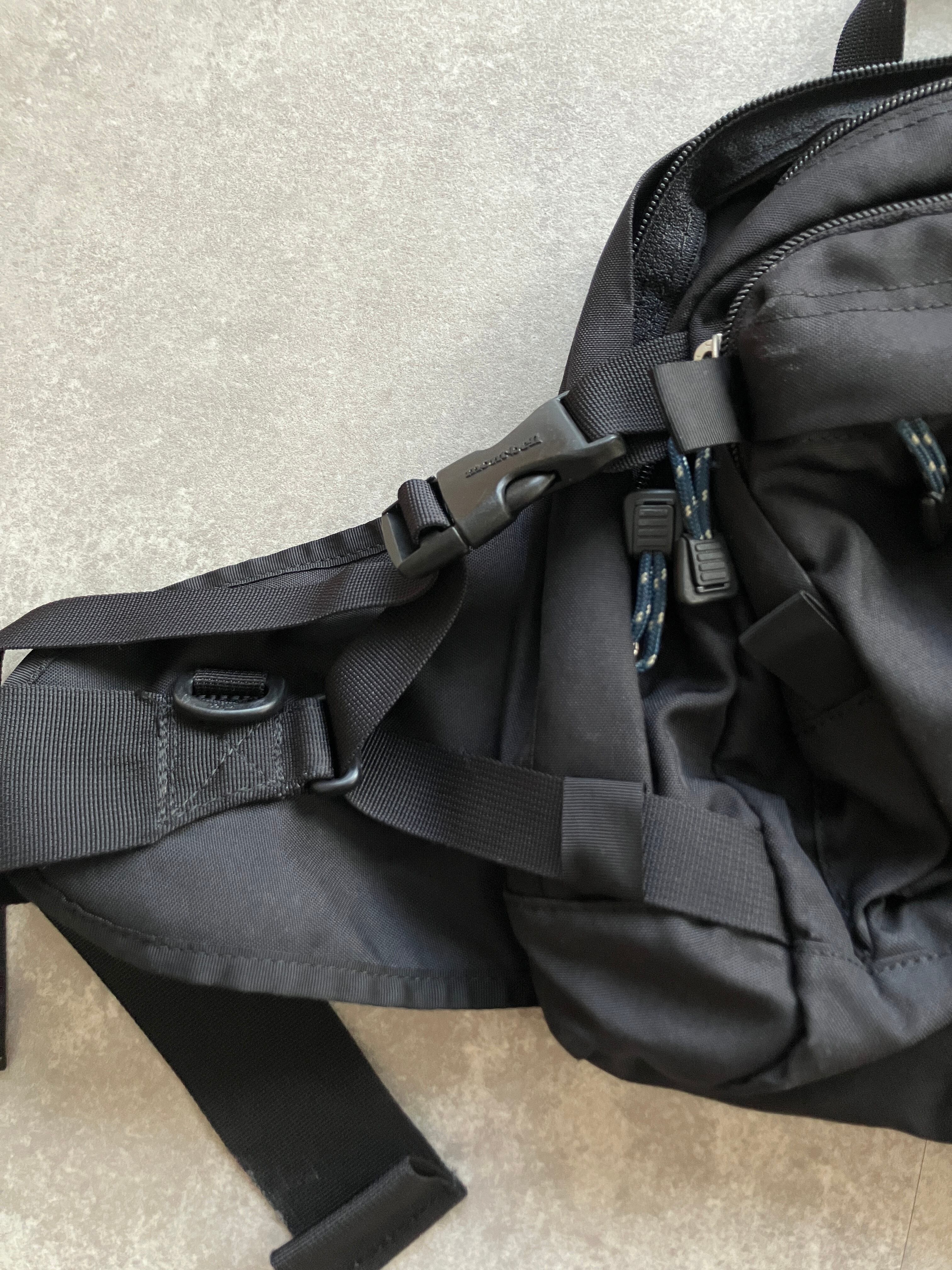 サイドコンプレッション・ベルトの調整で、背負い心地を調整できるほか、ウインドブレーカーなどを挟んで固定できるストラップを備えているので、12ℓほどの容量ですが、拡張性もあり重宝するアイテムかと思います
