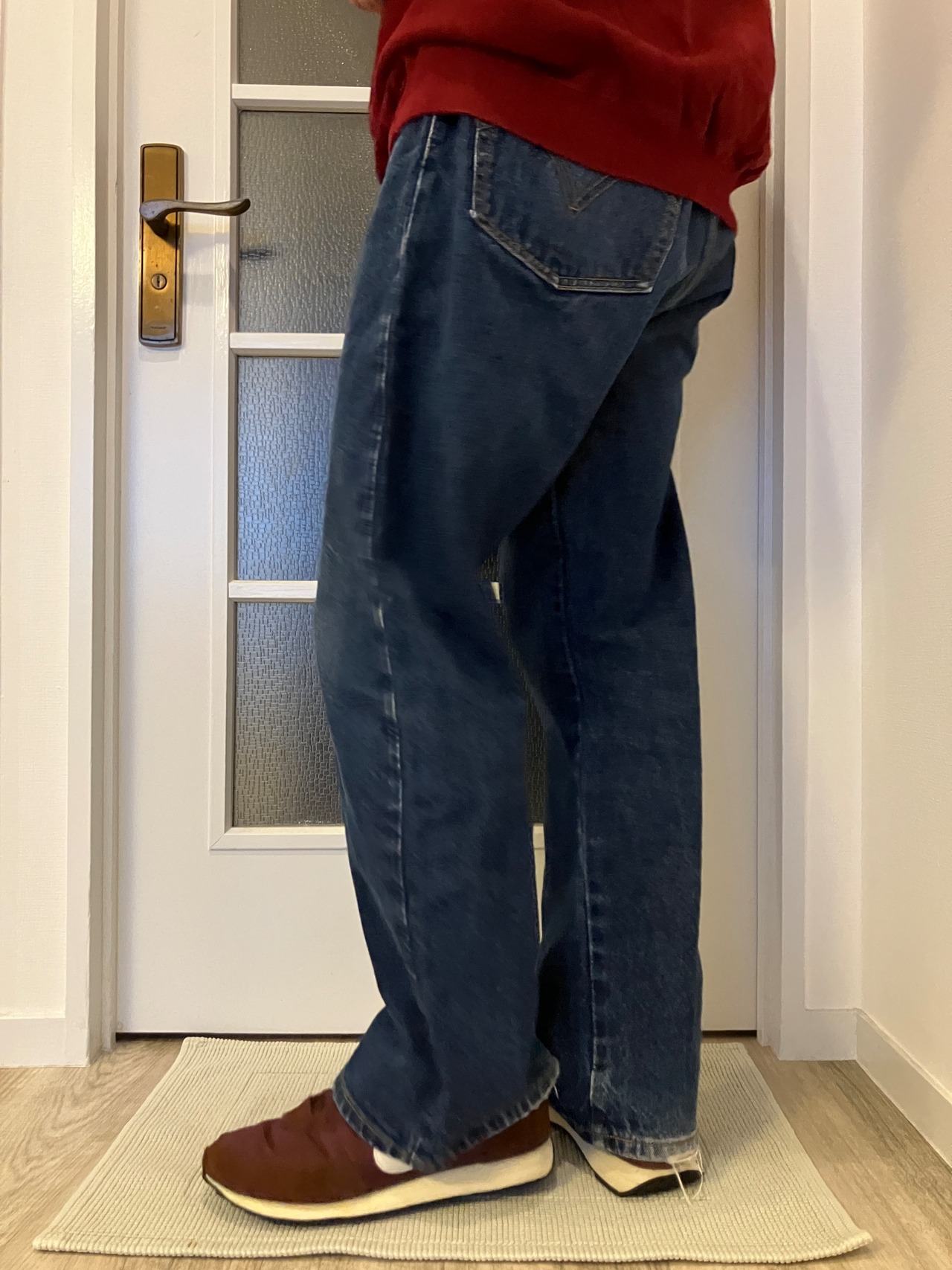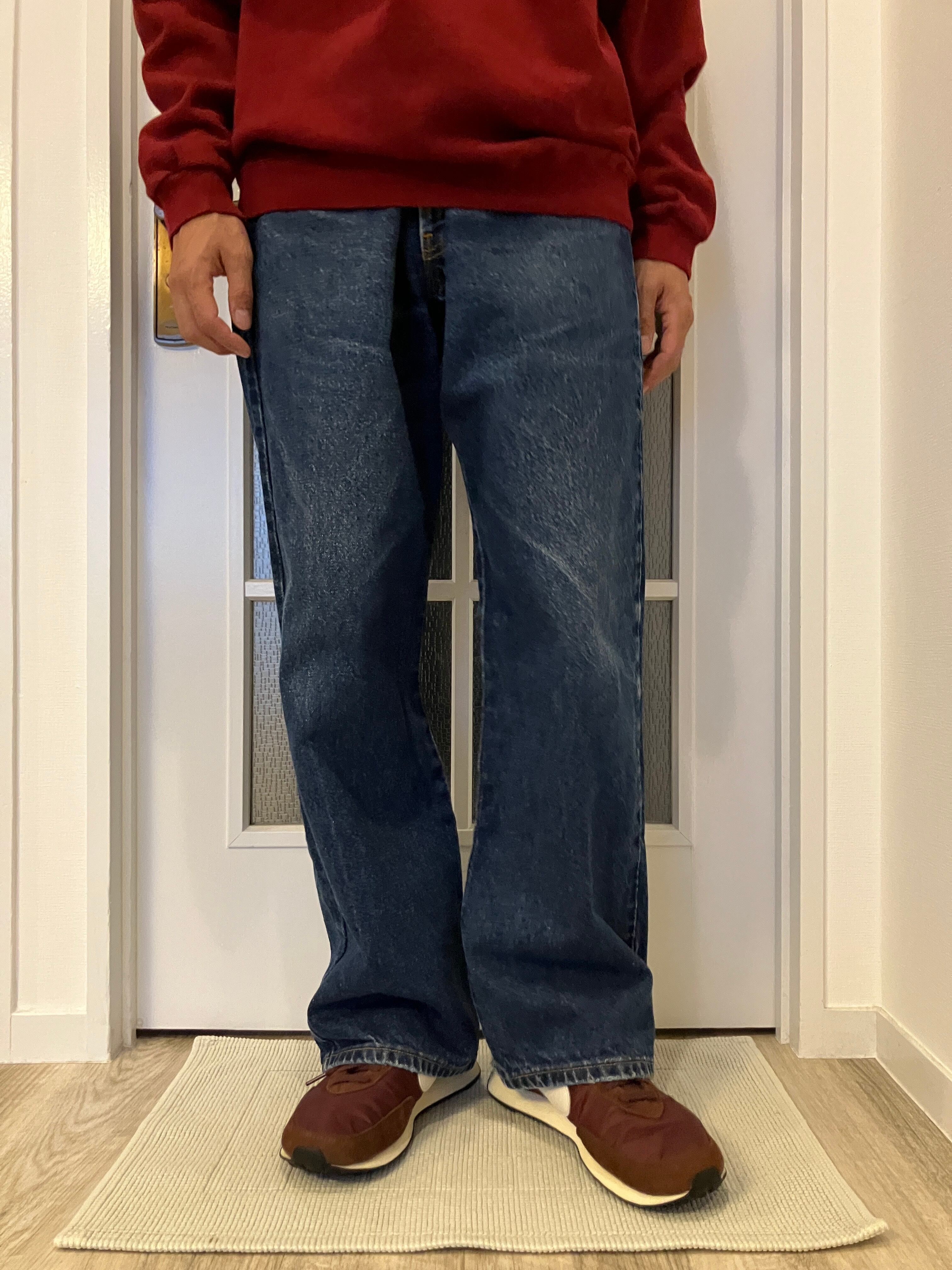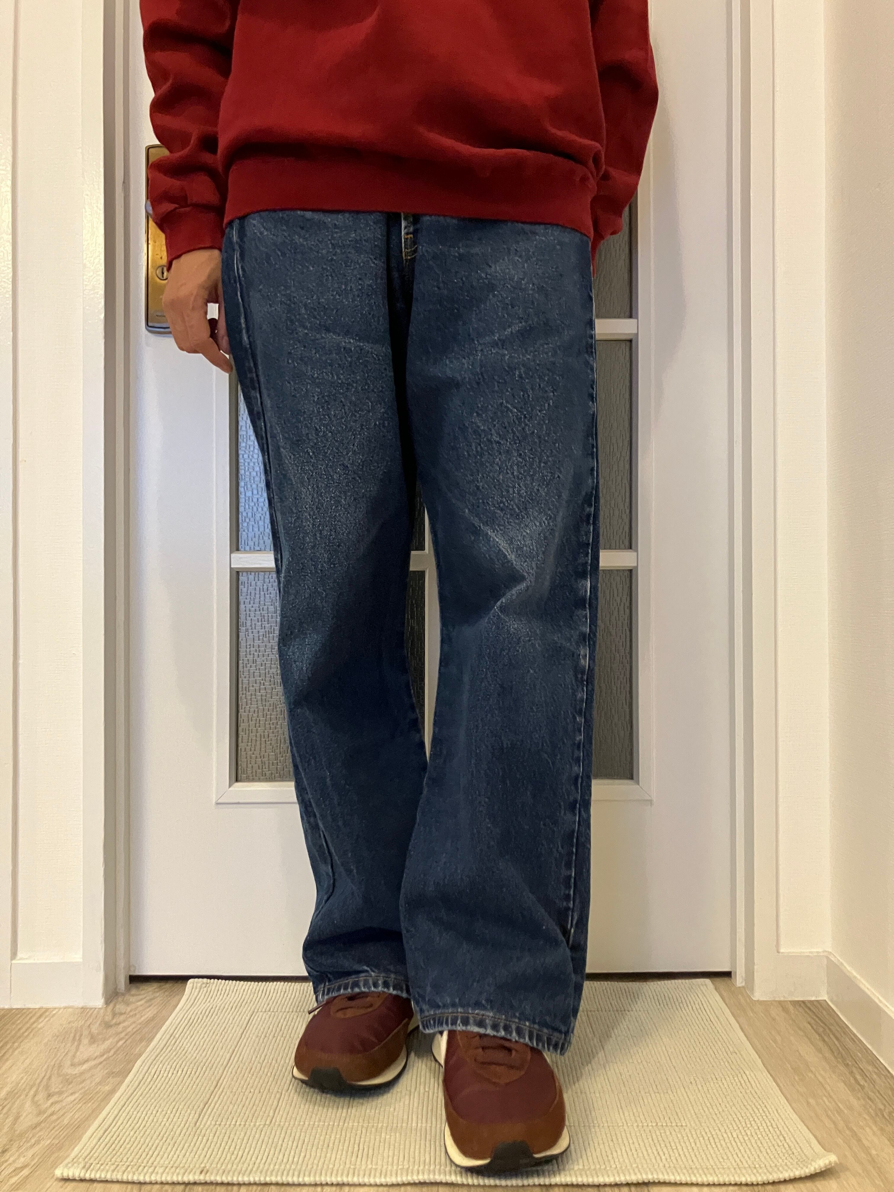 深みのあるバーガンディは、着用写真にあるように、インディゴデニムとの相性がとっても良いです