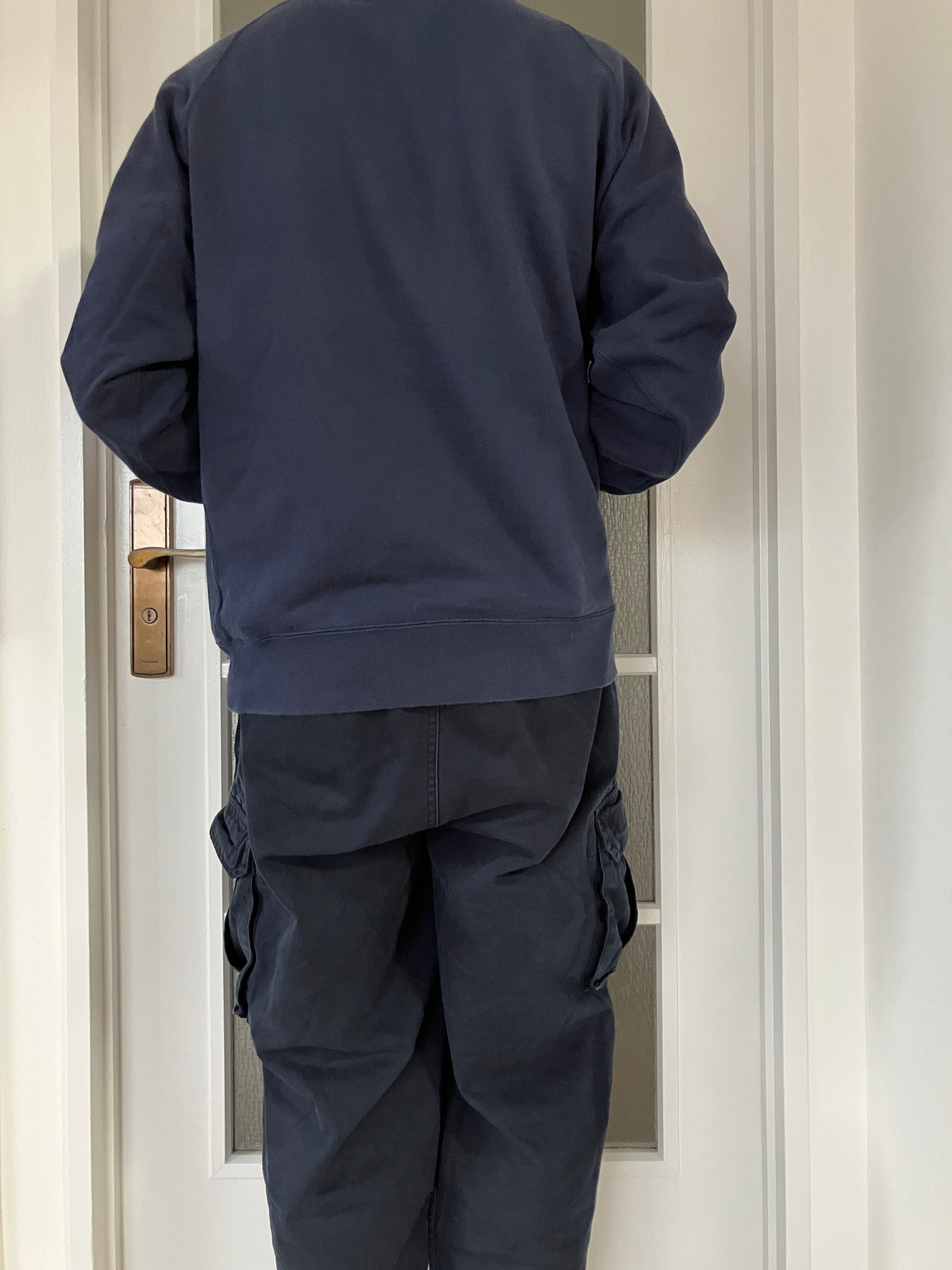 古いものではありませんが、経年によるスレやあたりがあり、やれ感がありますが、実に古着らしい表情をしております、身幅があり短丈の四角いシルエットも良いです