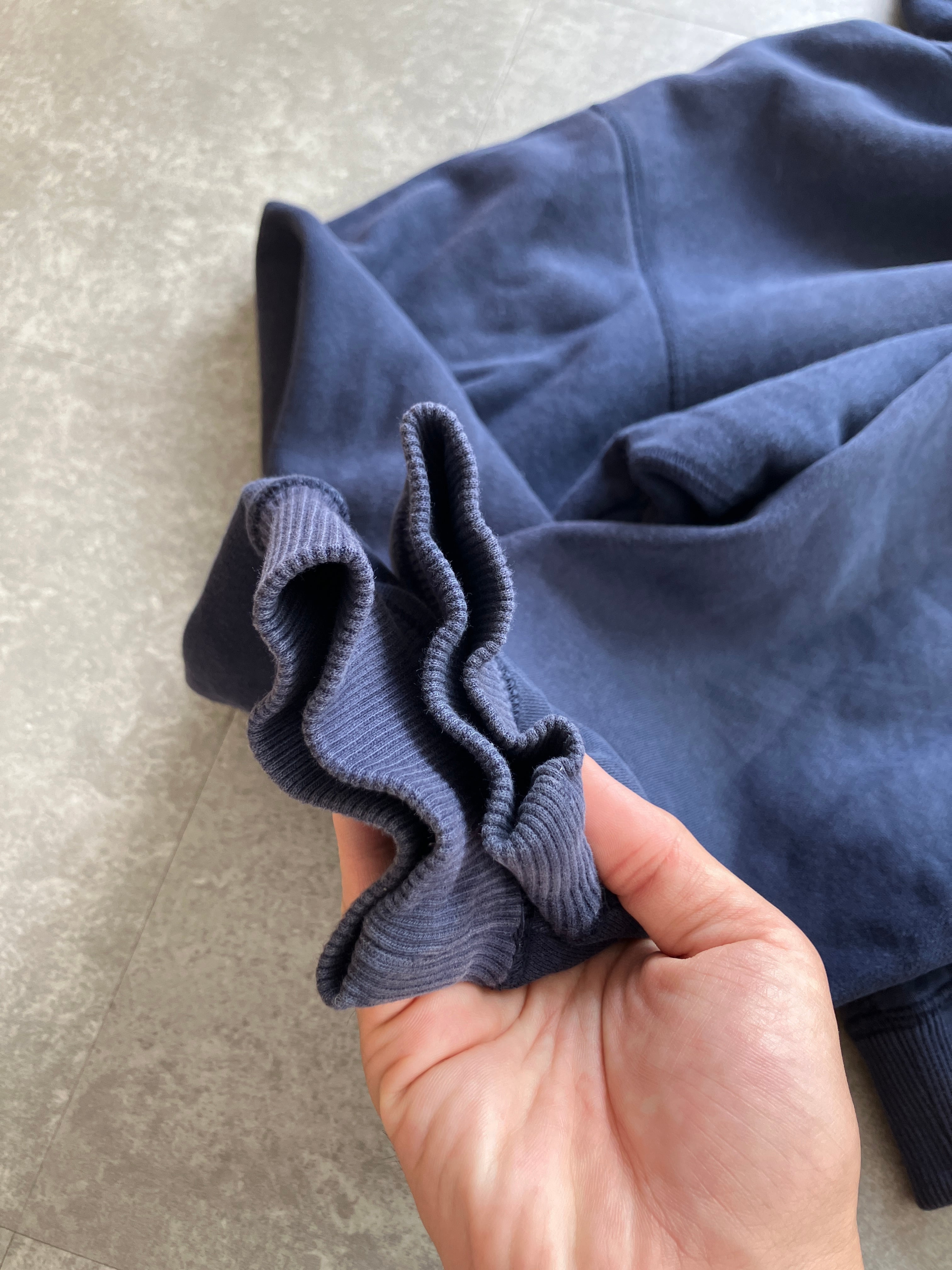 裏起毛のやや厚手な生地感のため、1枚でもしっかりボリュームは感じつつ、重ね着の際は、そこまで嵩張らない絶妙なオンスです