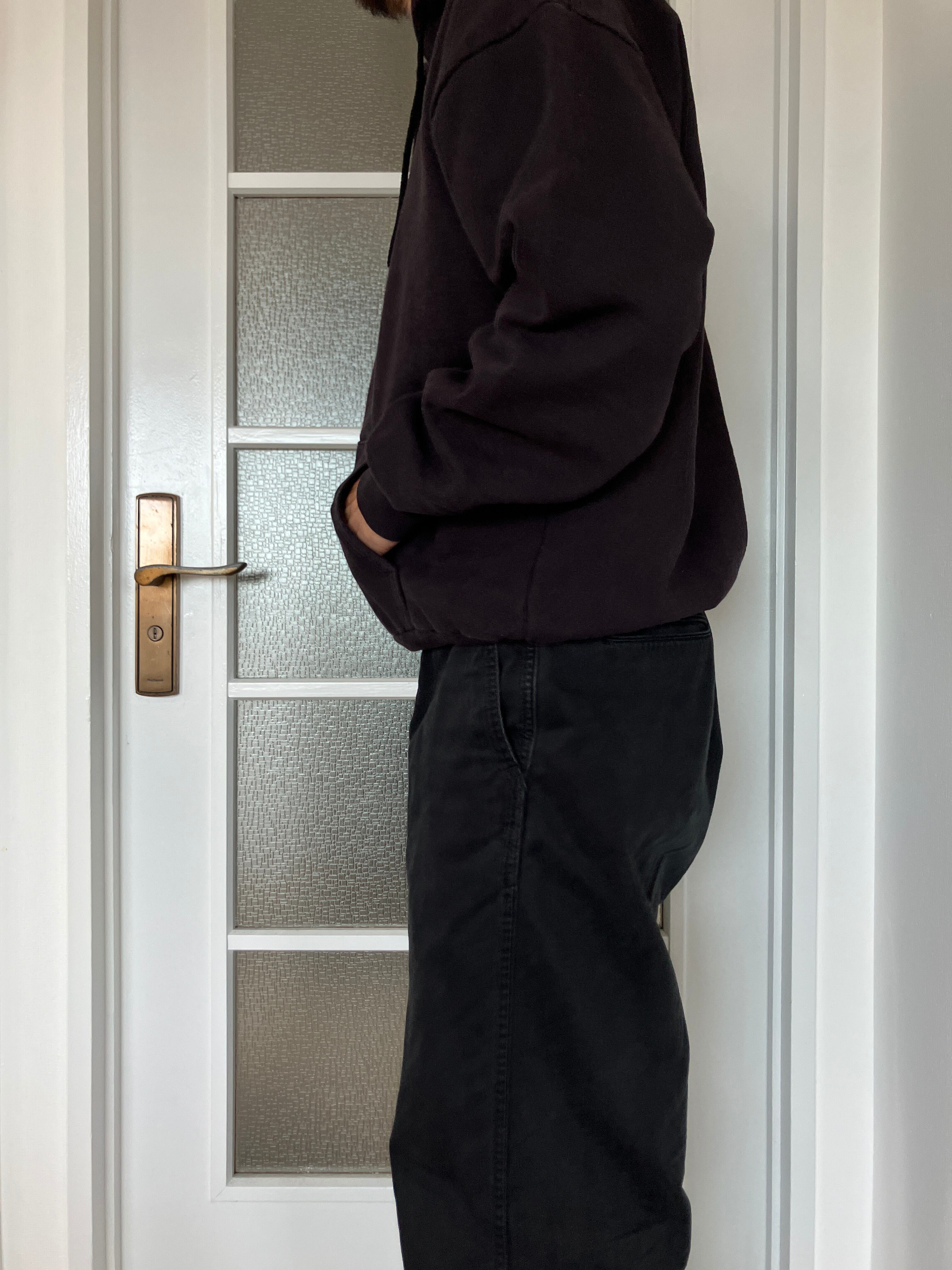着丈:背面首付け根から垂直に裾までの長さを計測しております。首元の襟、リブなどは含みません。