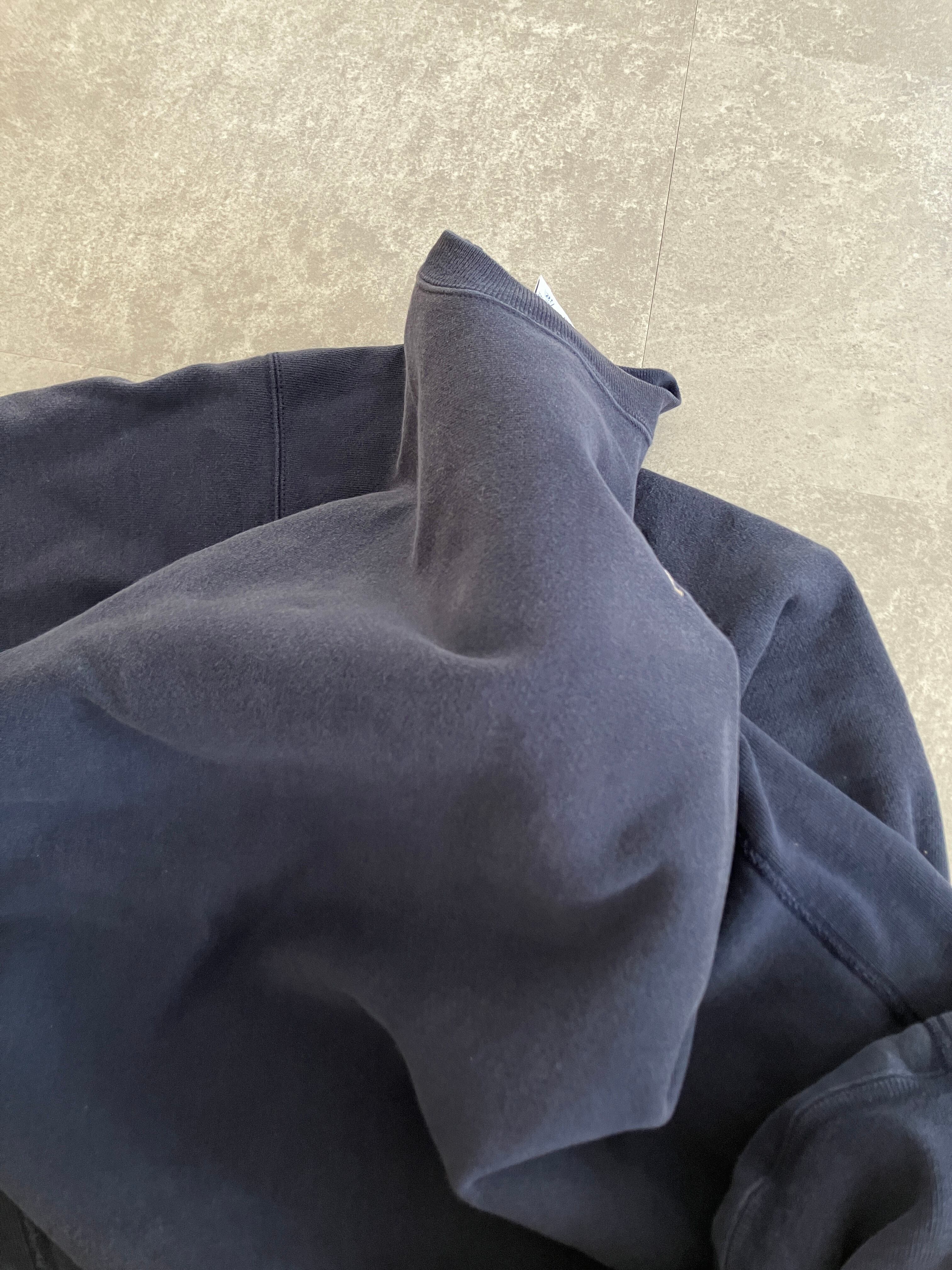 表記でXLサイズのネイビー、シンプルなワンポイントデザイン、状態含め好条件の個体だと思っております