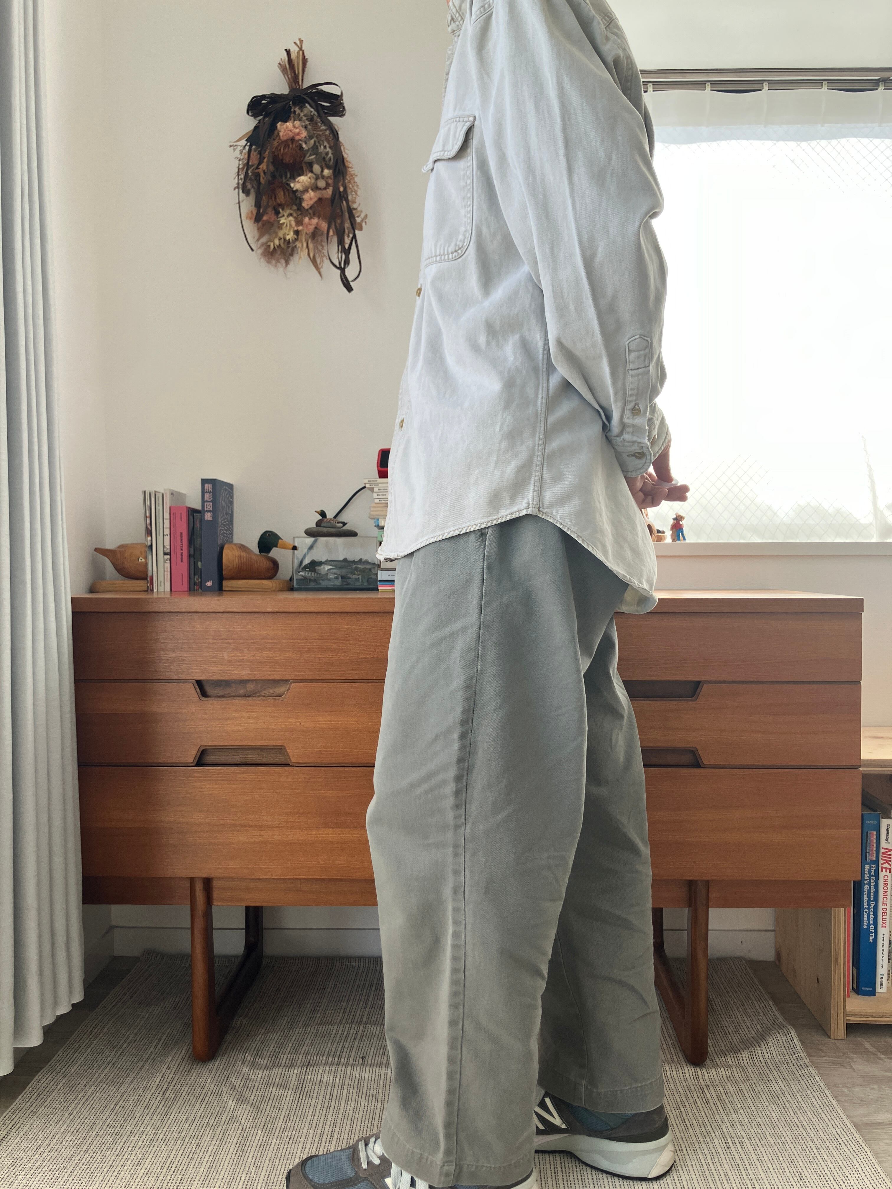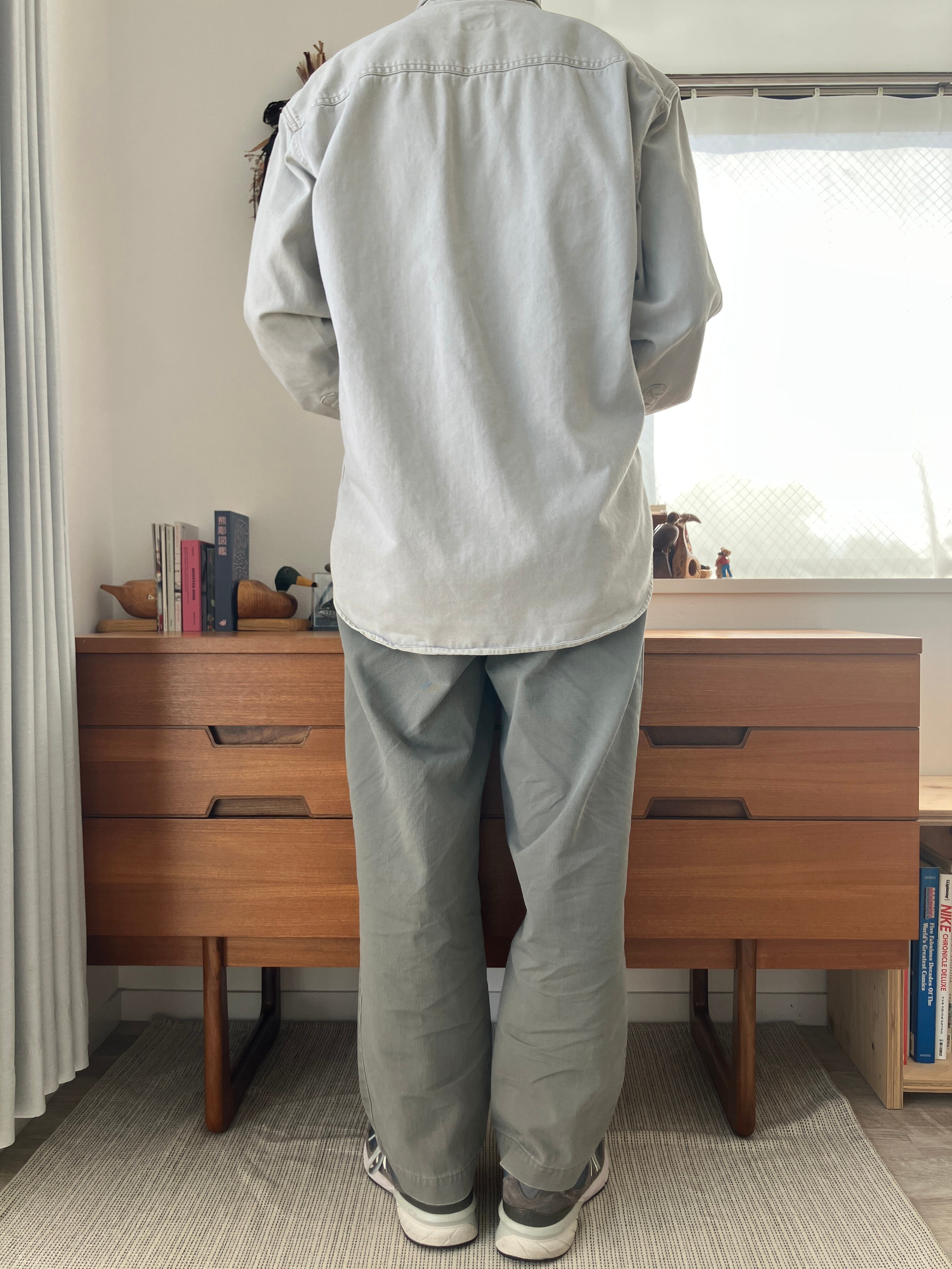 オンスおもめのしっかりしたコットンの名残りはありつつ、経年により柔らかく着用しやすい質感へと変化しております