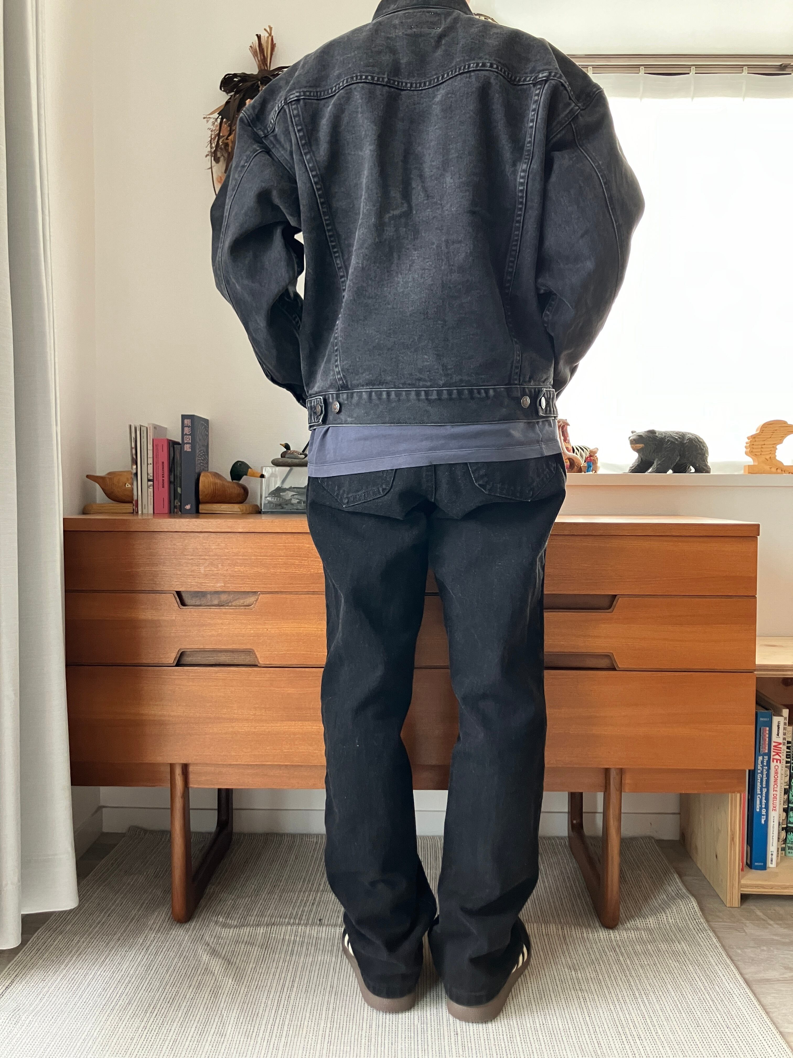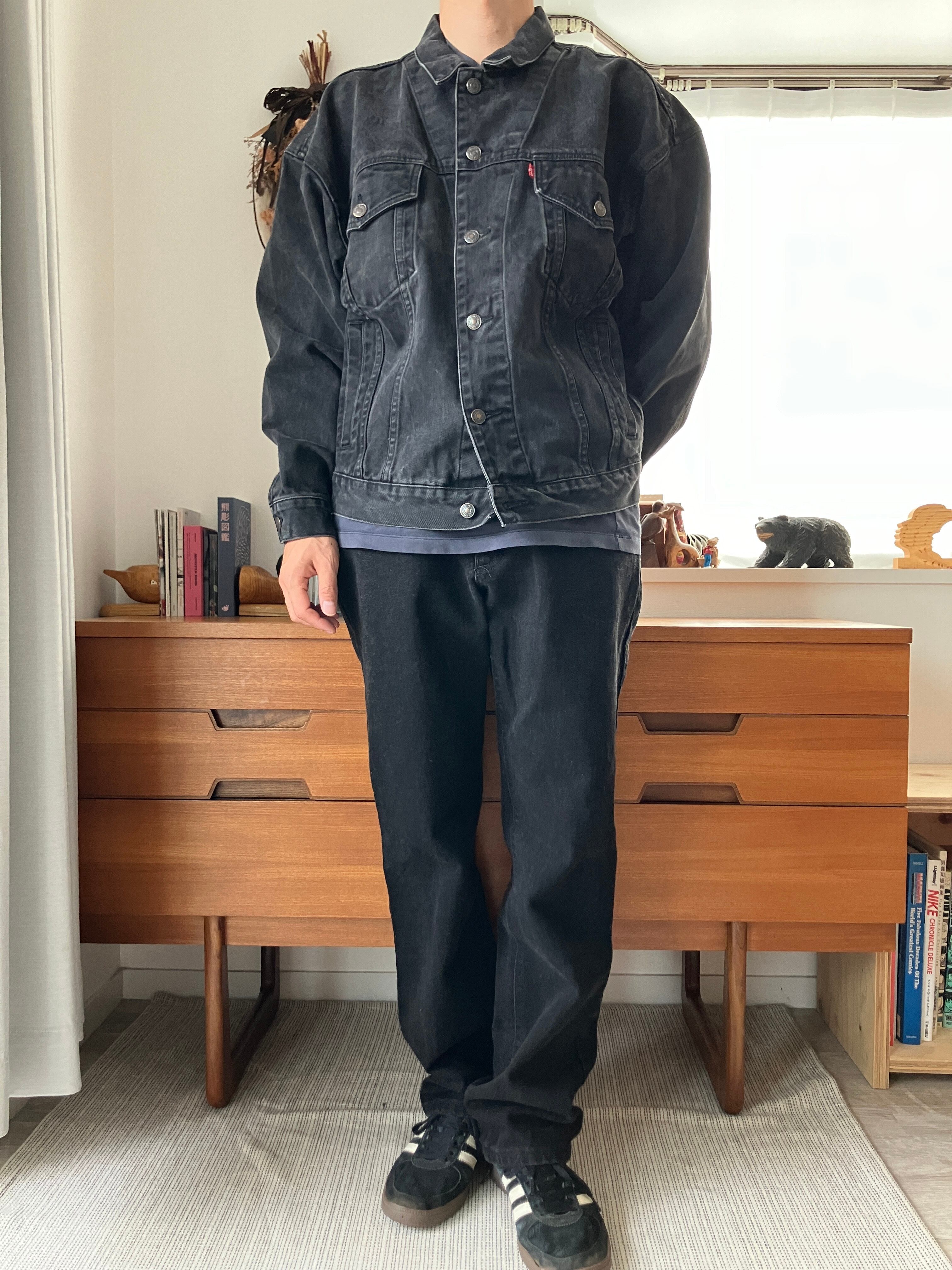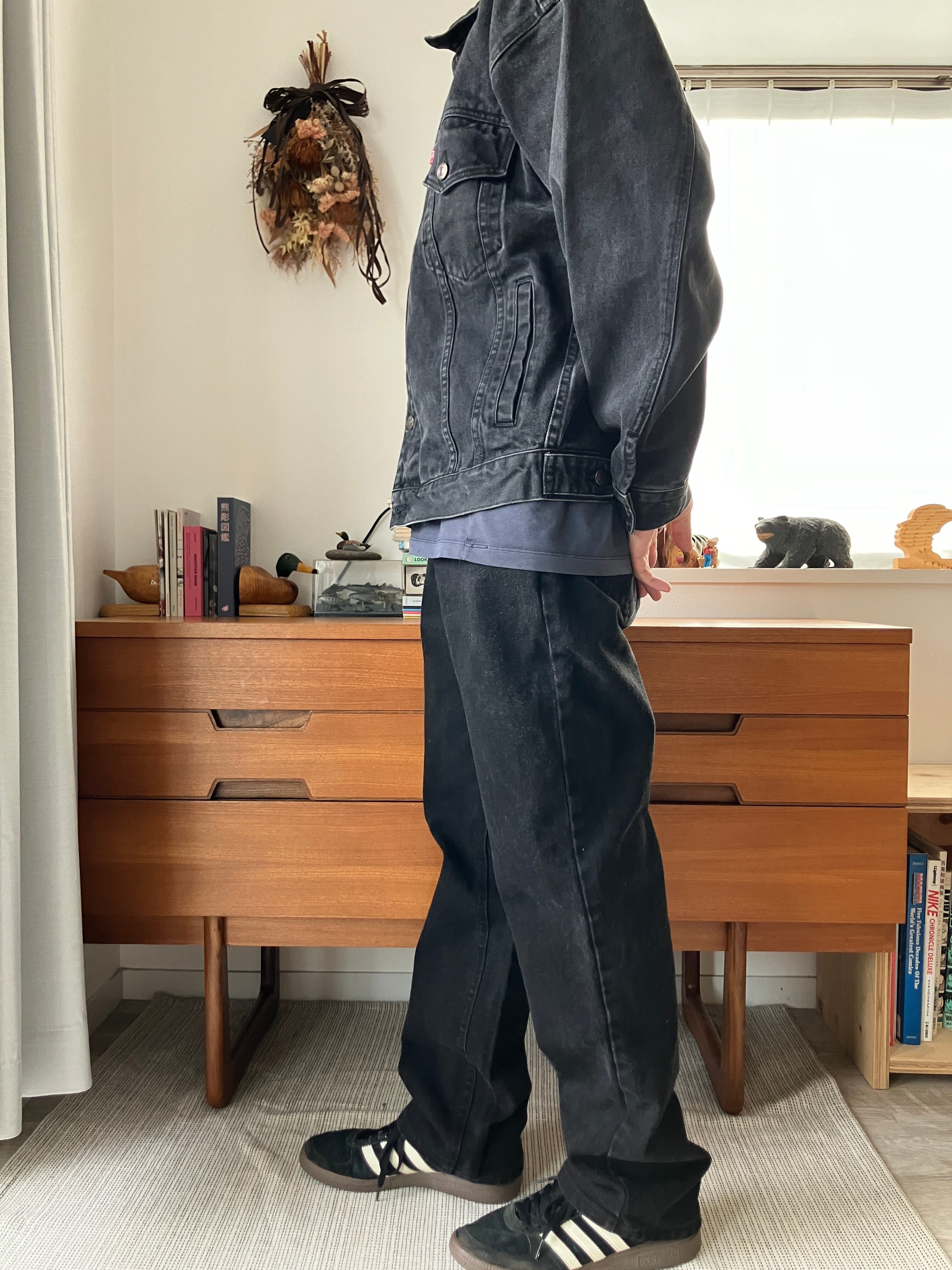 リーバイス然り、こちらのブラックデニムも様々なトップスと合わせやすいアイテムですので、お手持ちのアイテムともバッチリかと思います