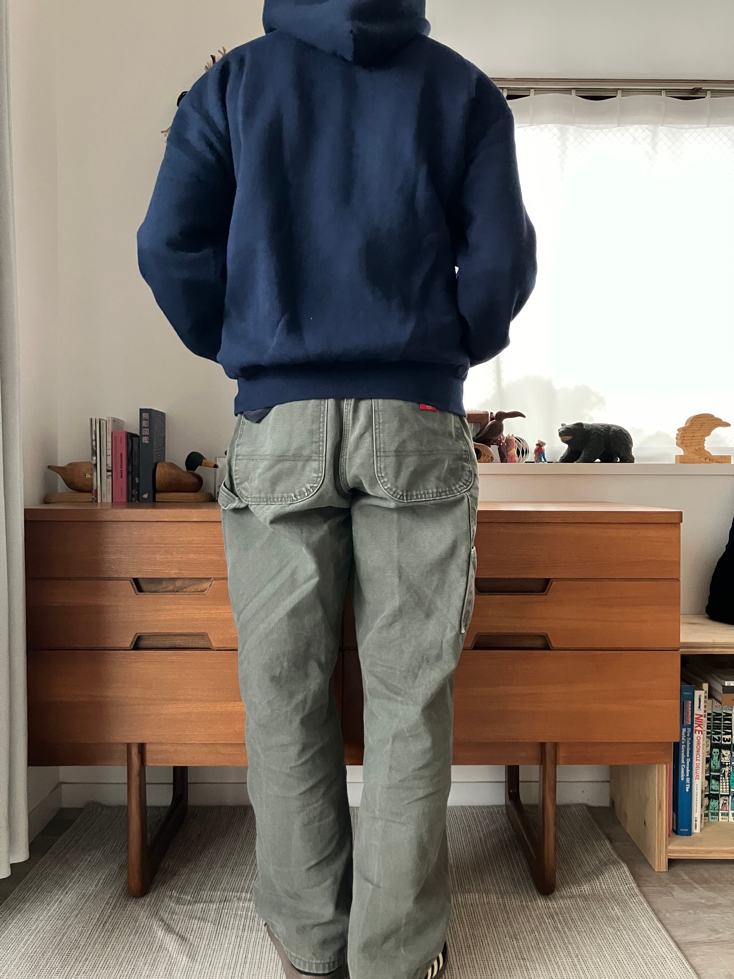 着丈:背面首付け根から垂直に裾までの長さを計測しております。首元の襟、リブなどは含みません。