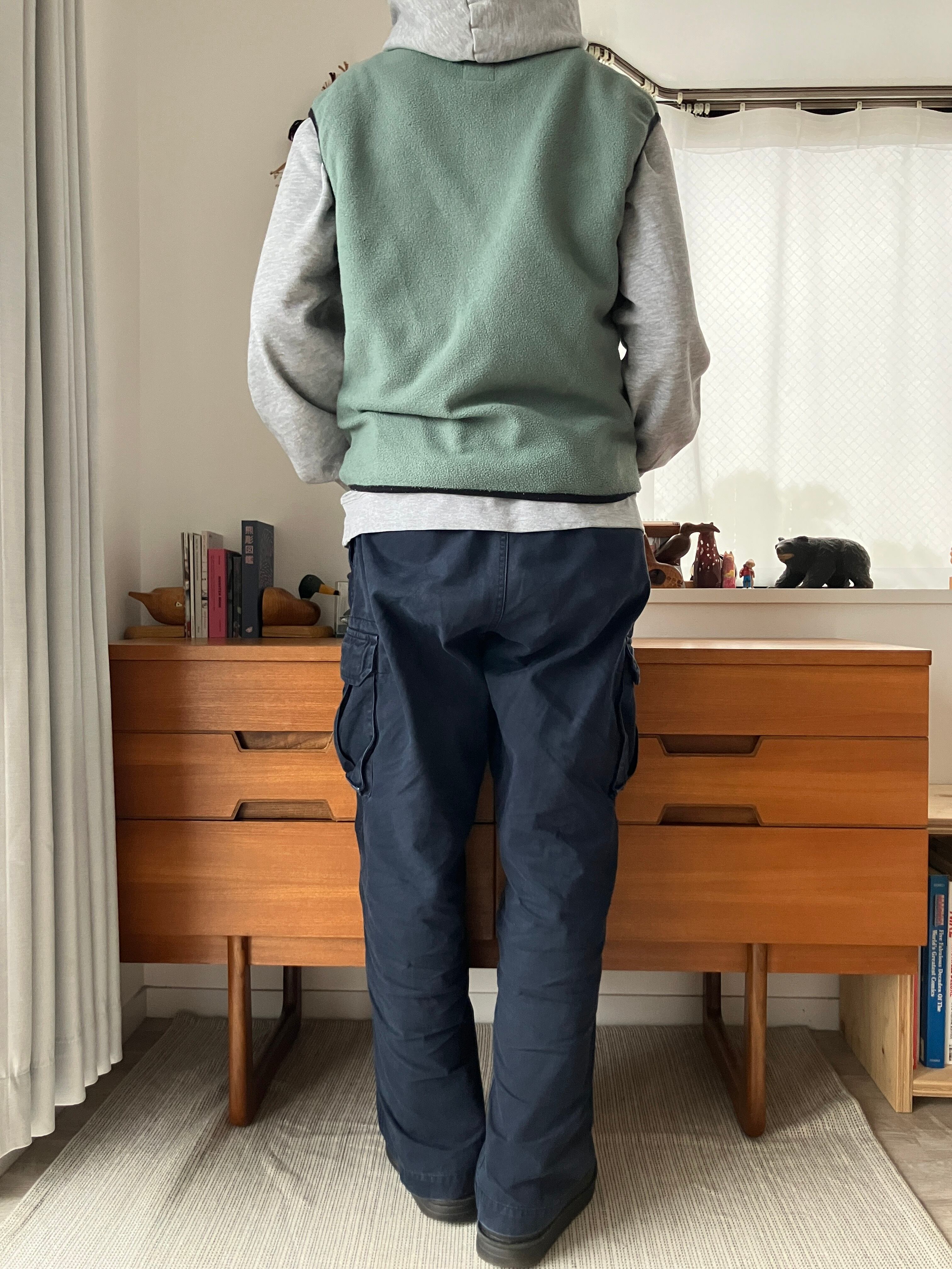 着用写真のように少しタイトに、フーディやスウェットに合わせるのがおすすめ