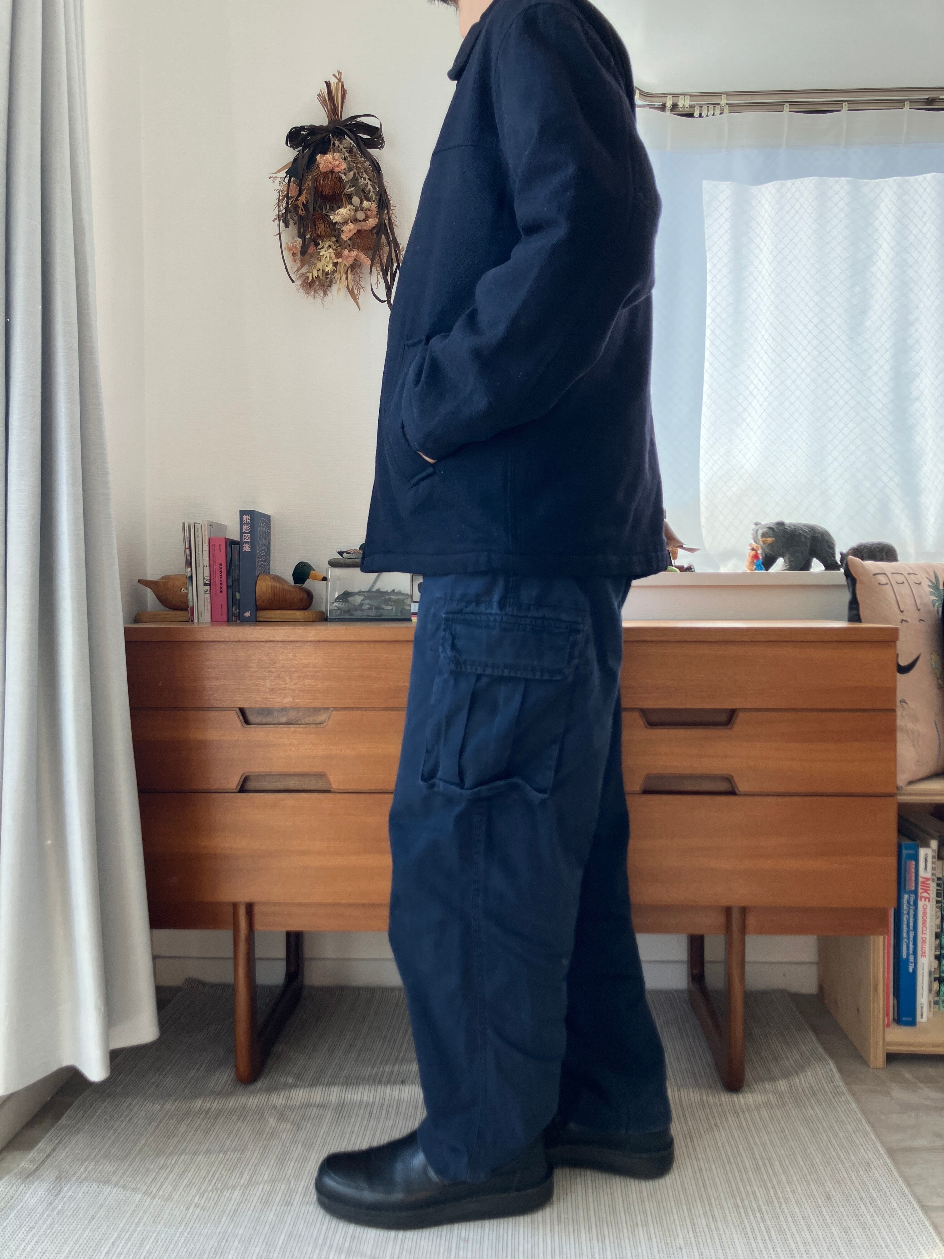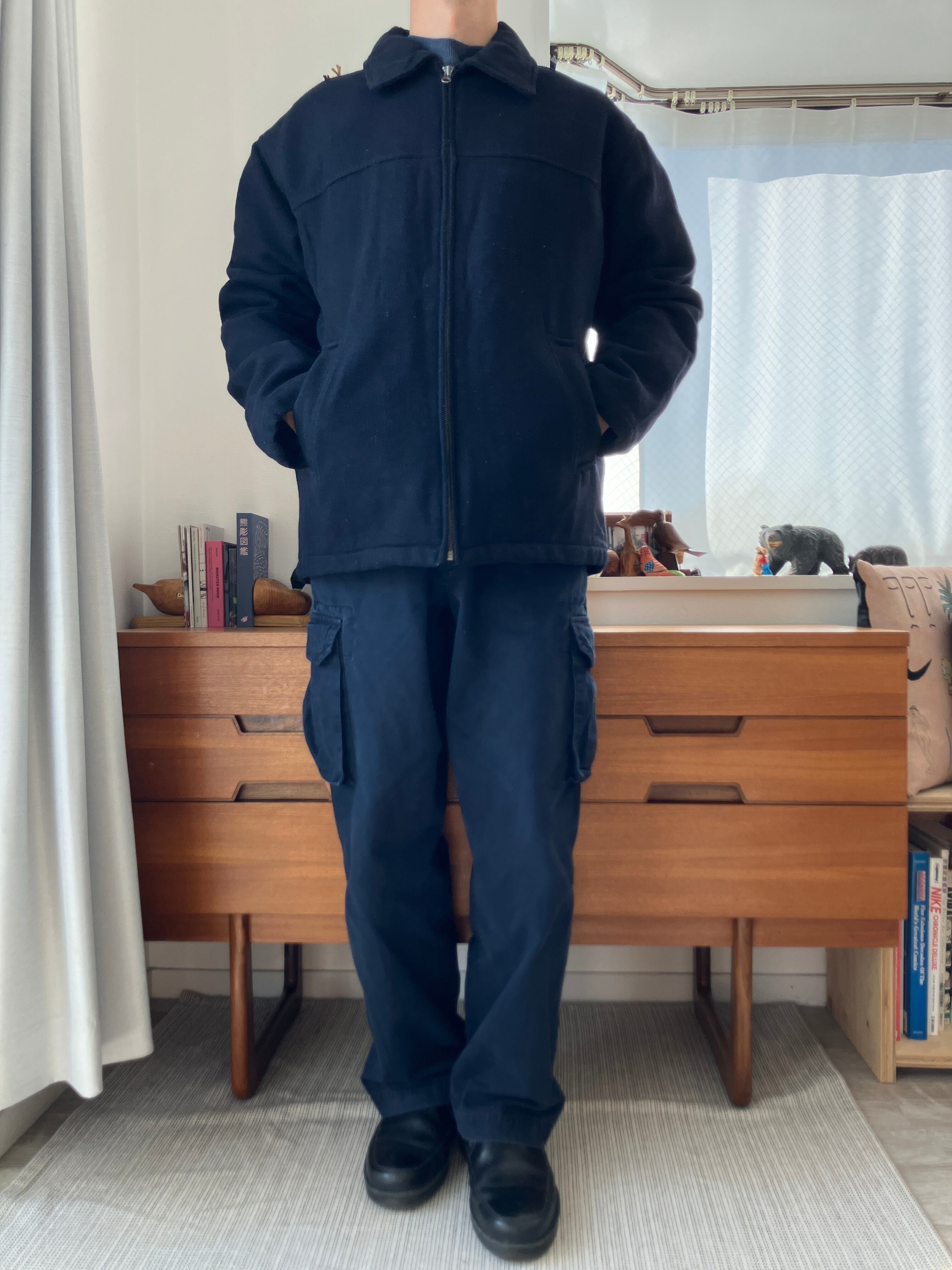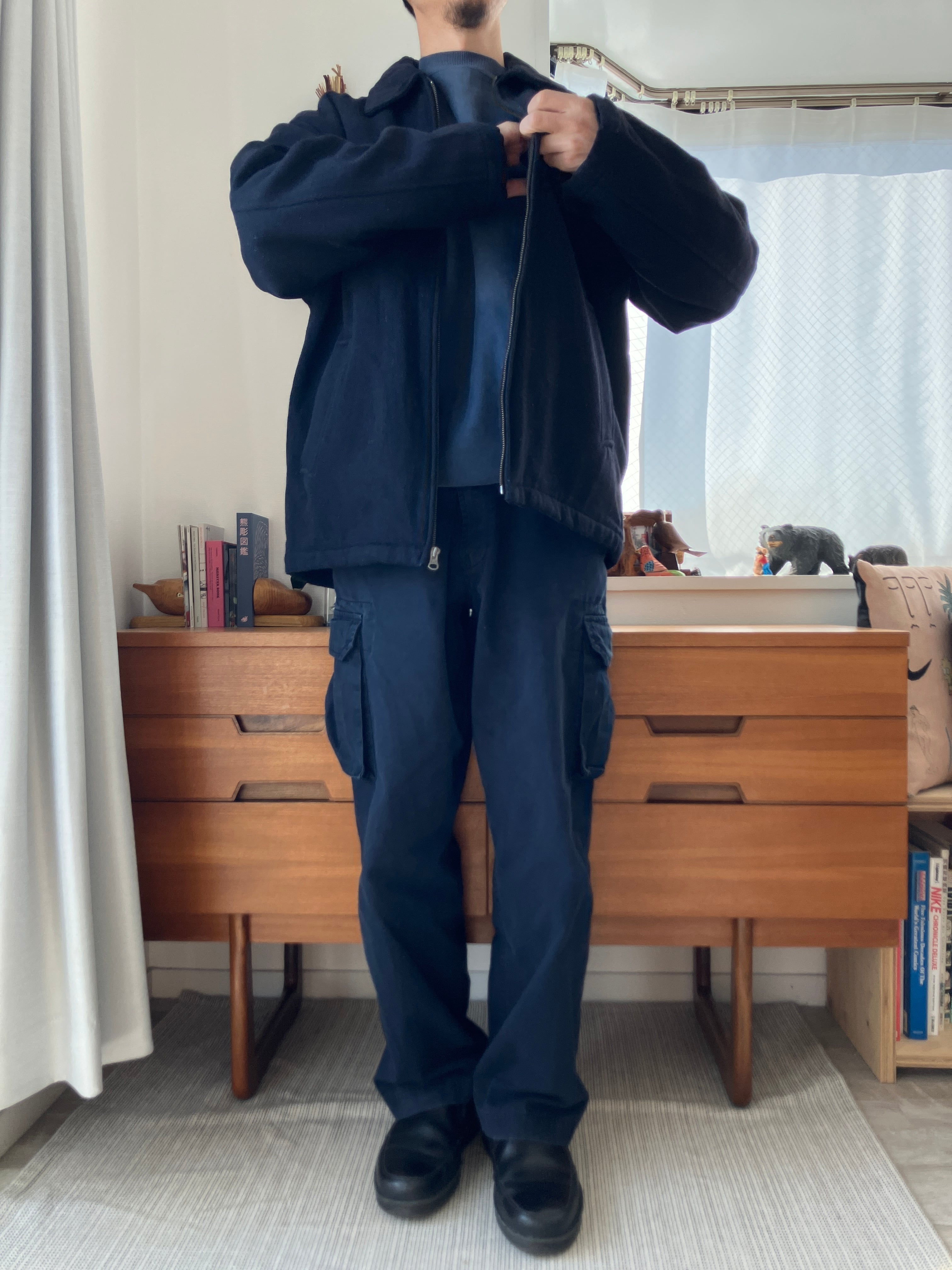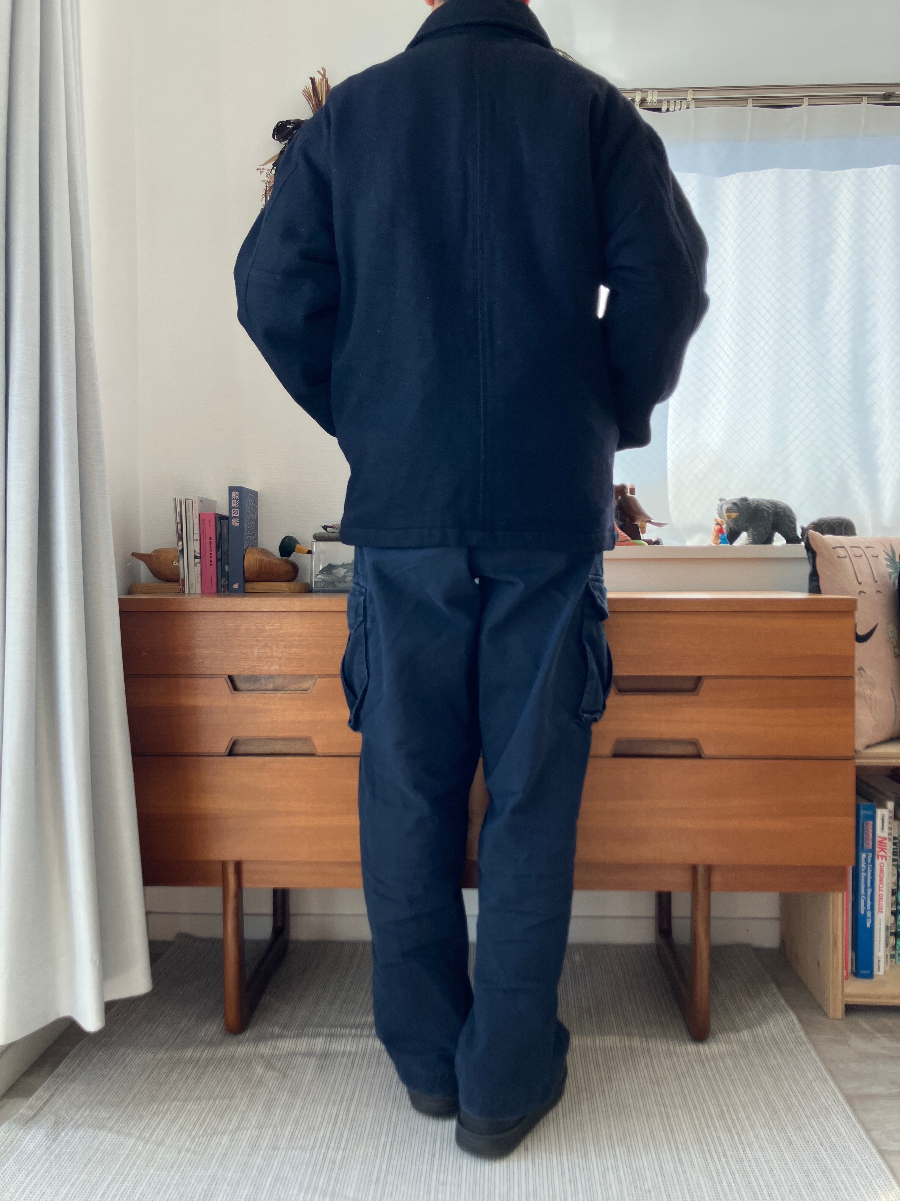 厚手のウールですが、ジャケットのような雰囲気も残したハーフコート