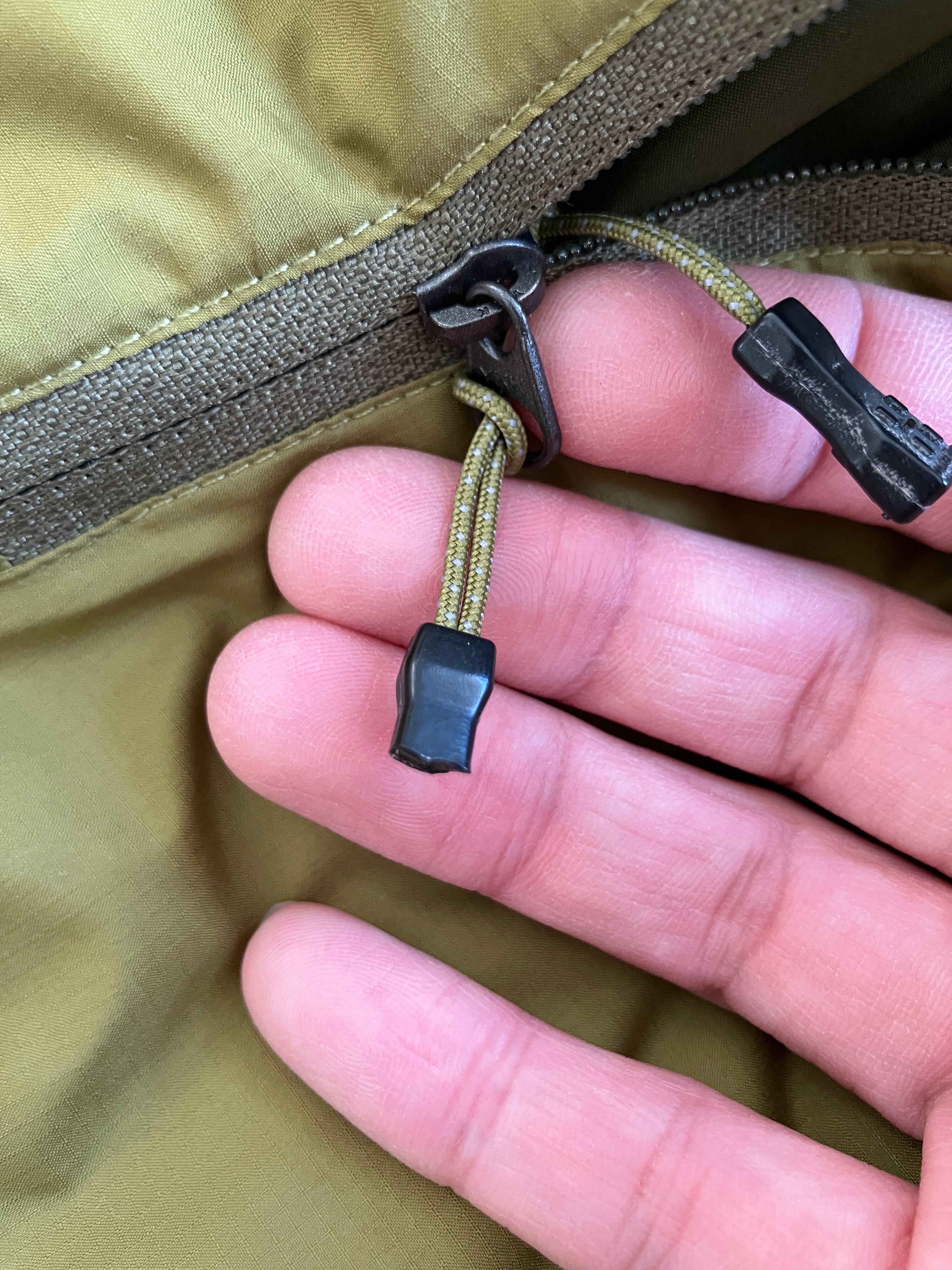 2ウエイのアジャスターフードは片手で調節可能、背面にハンギングループ、