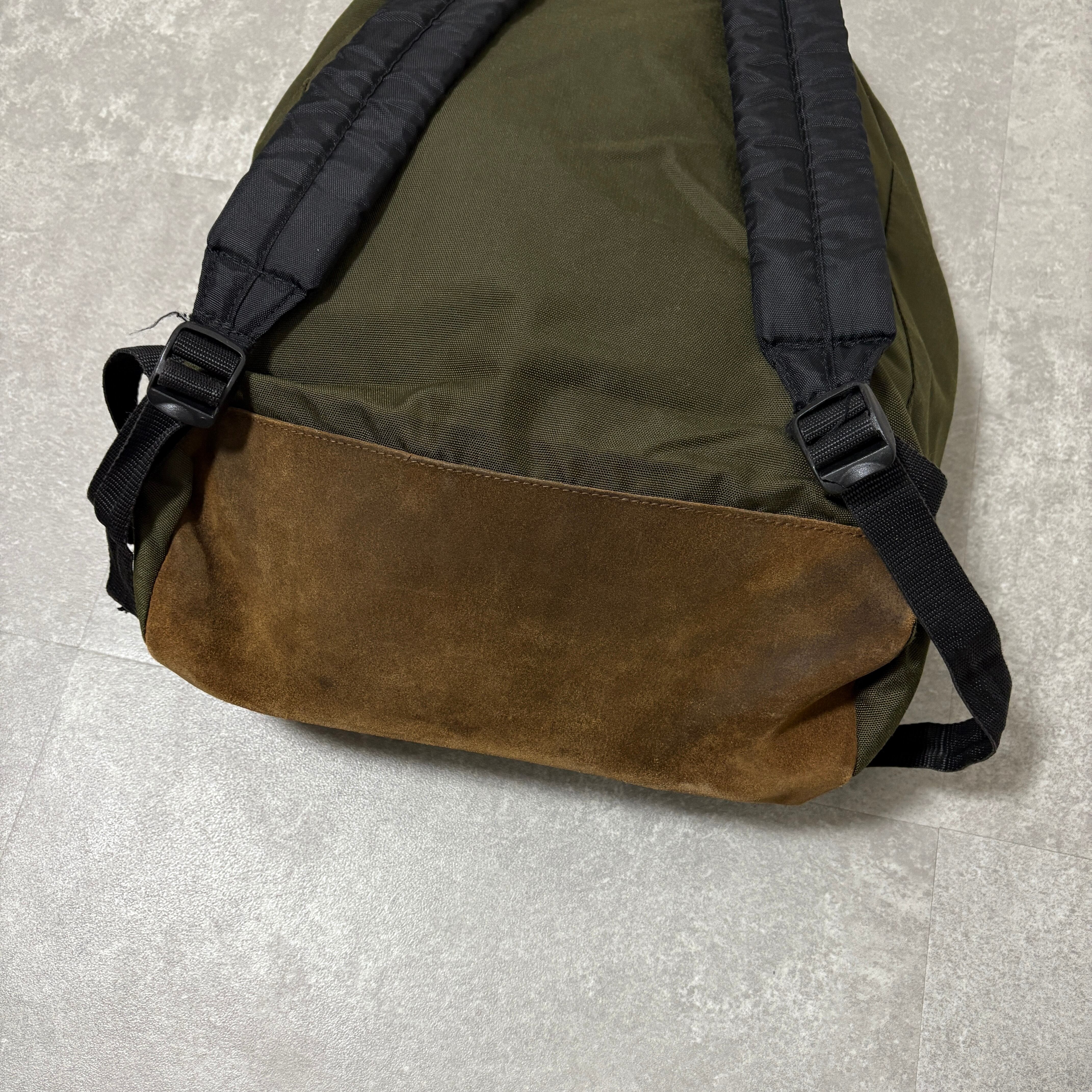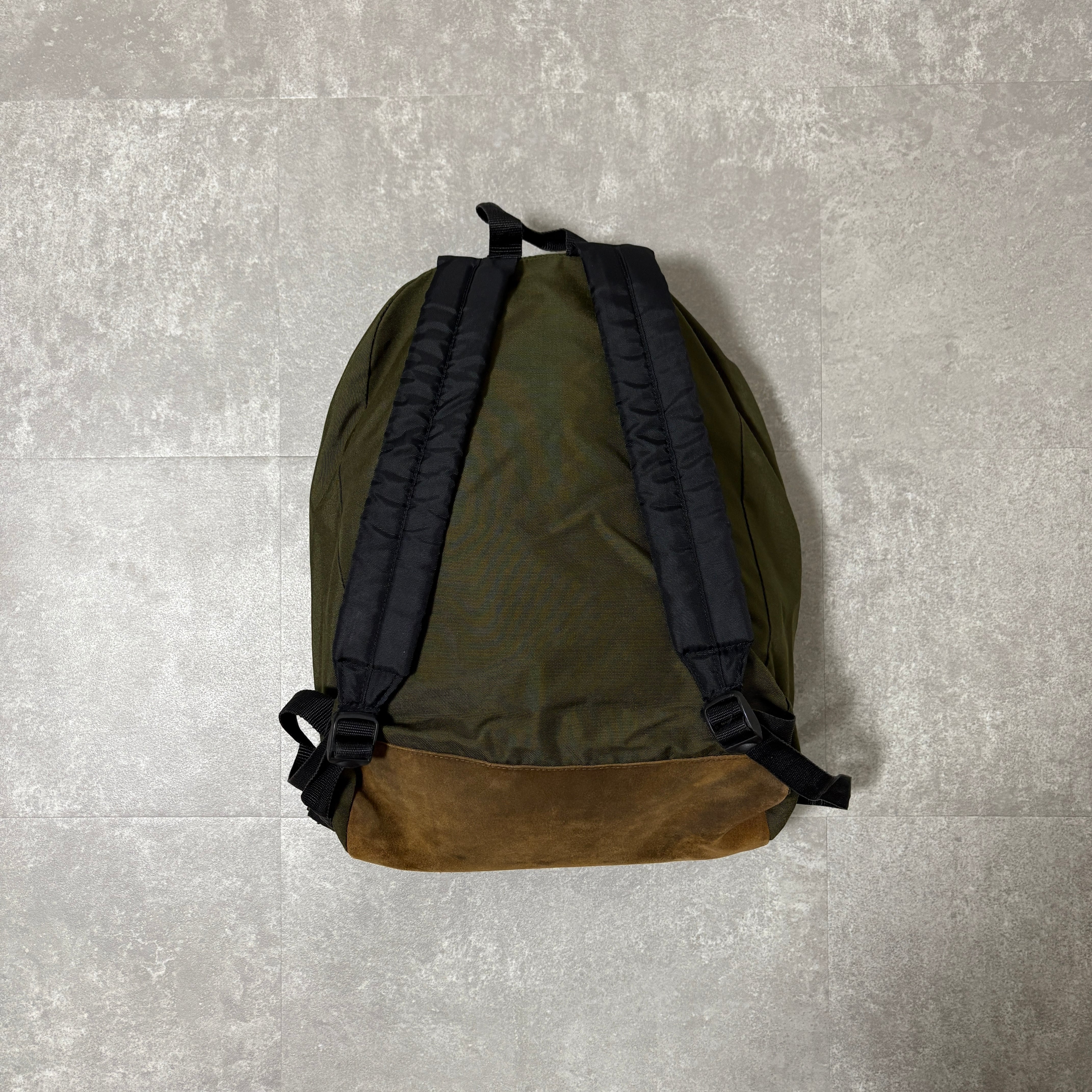 ボディはオリーブ、底面はブラウンスエード