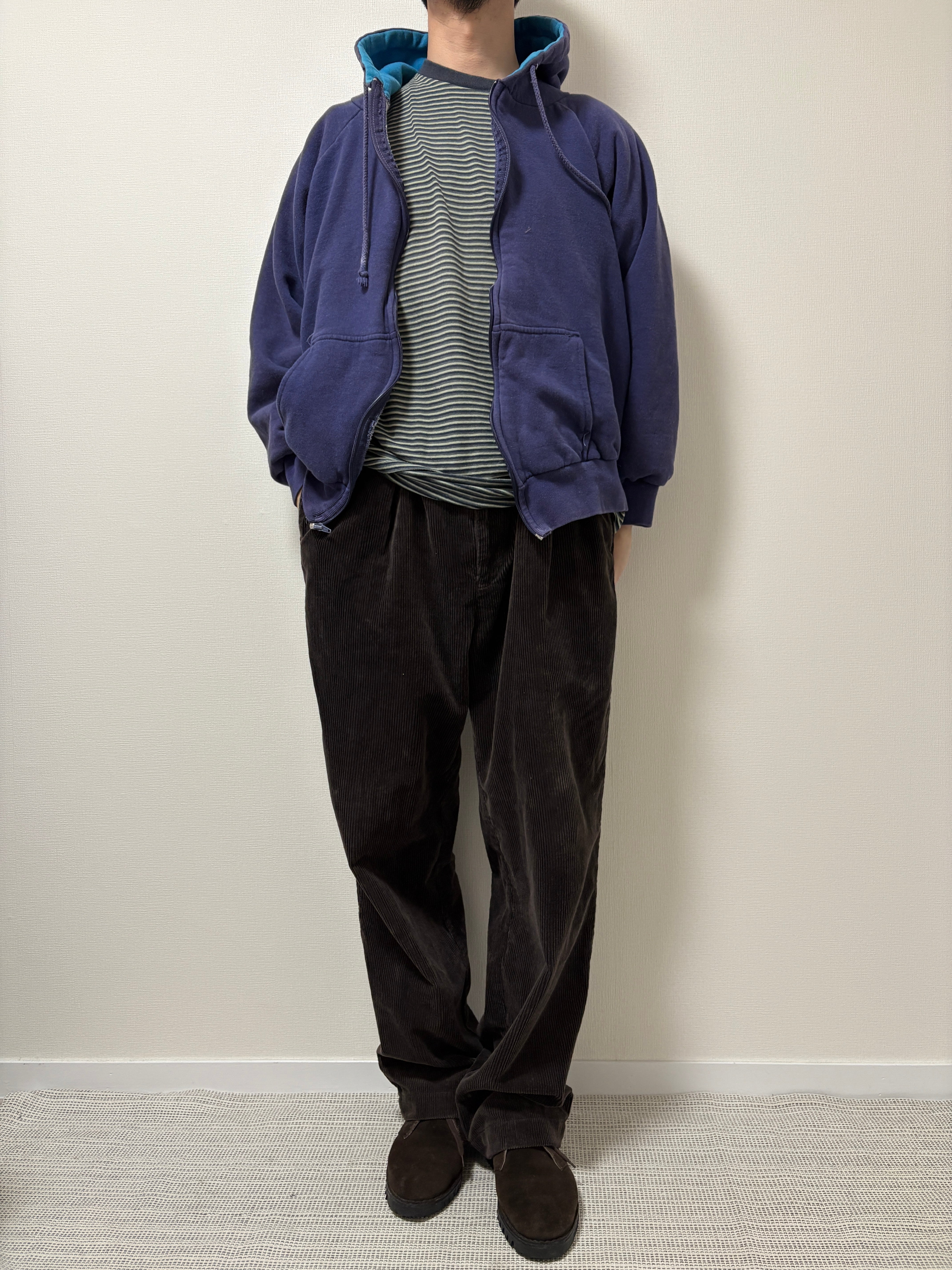 ナスコンにフェードした最高カラー、うねうねのジップ、ラグランスリーブ、ダブルフェイスの肉厚のボディ