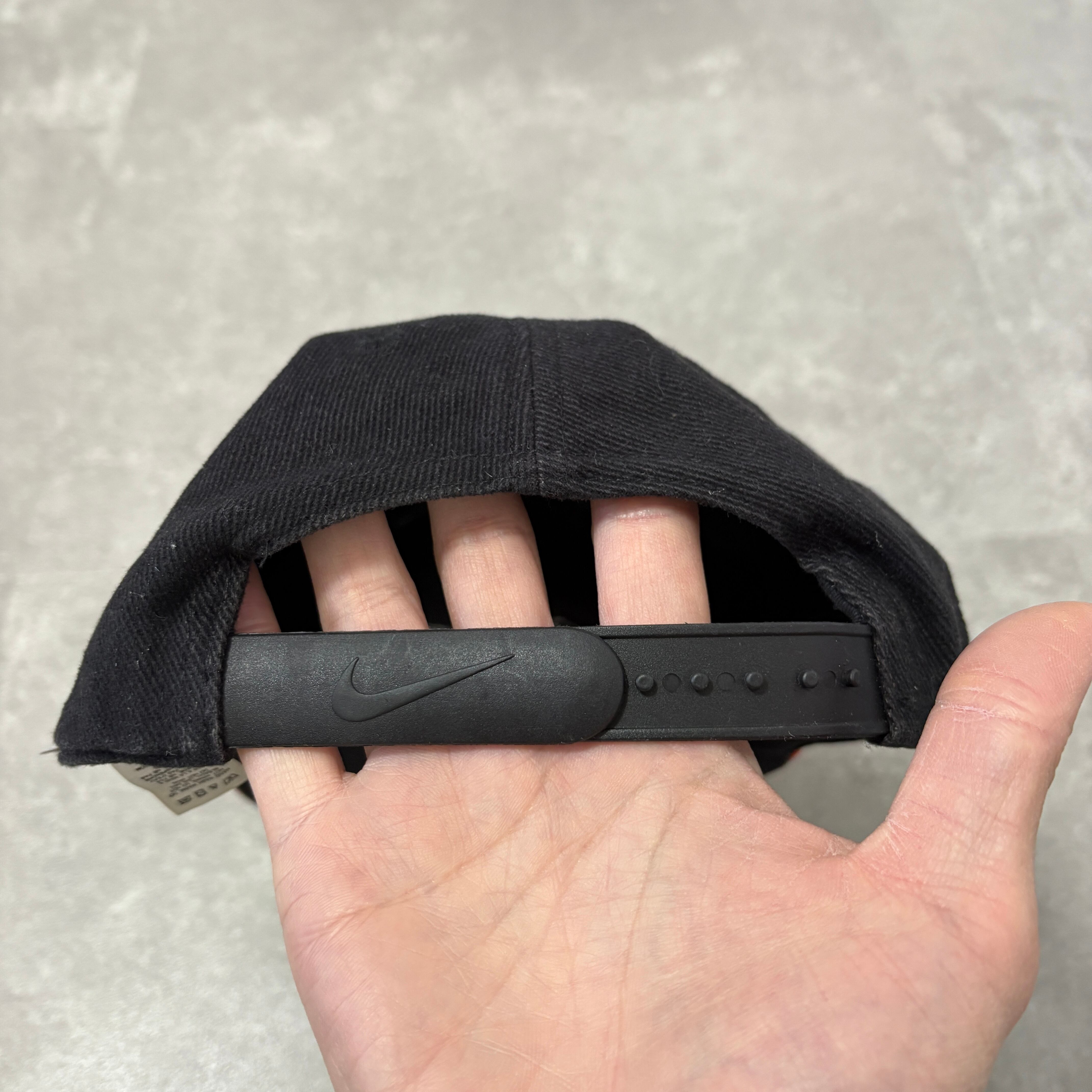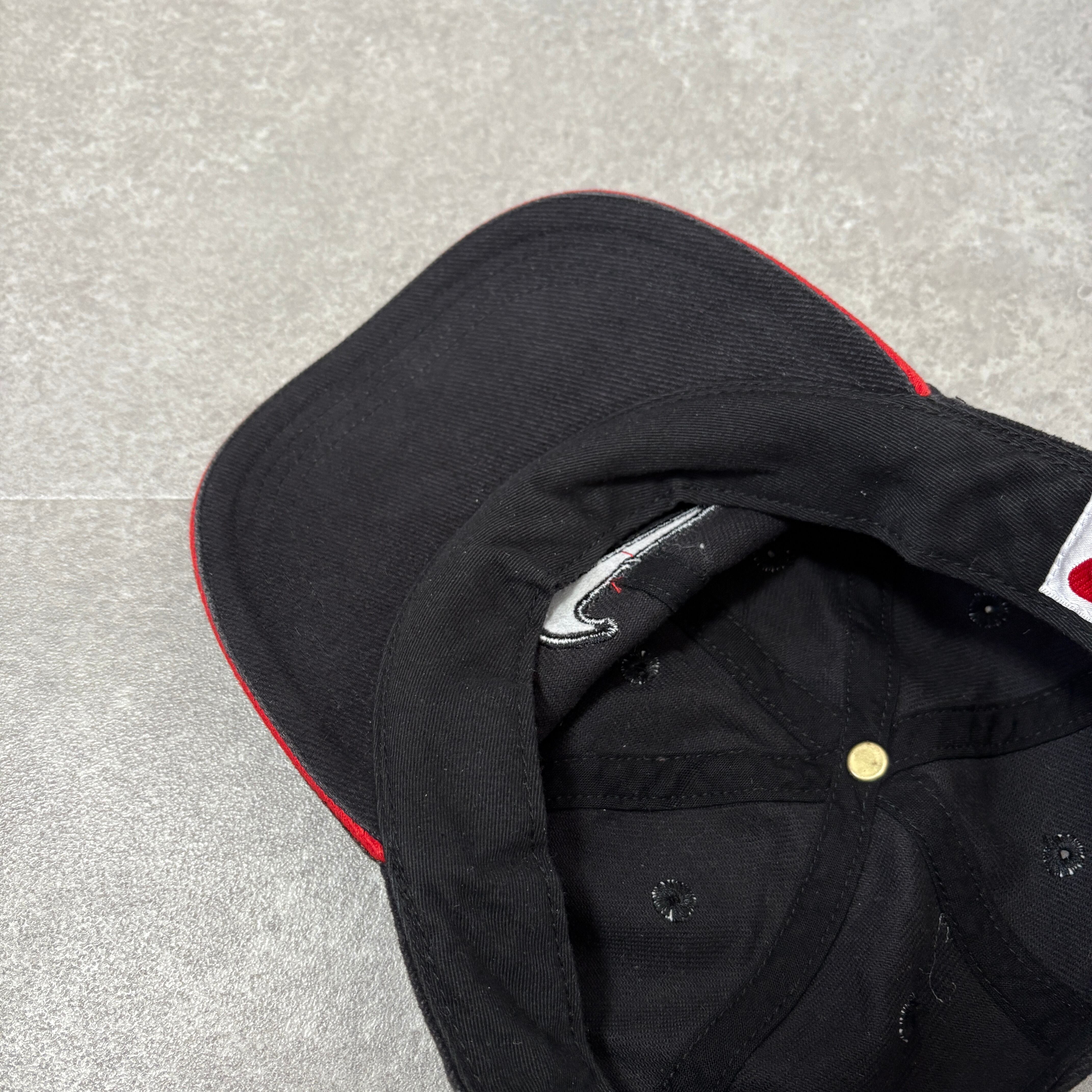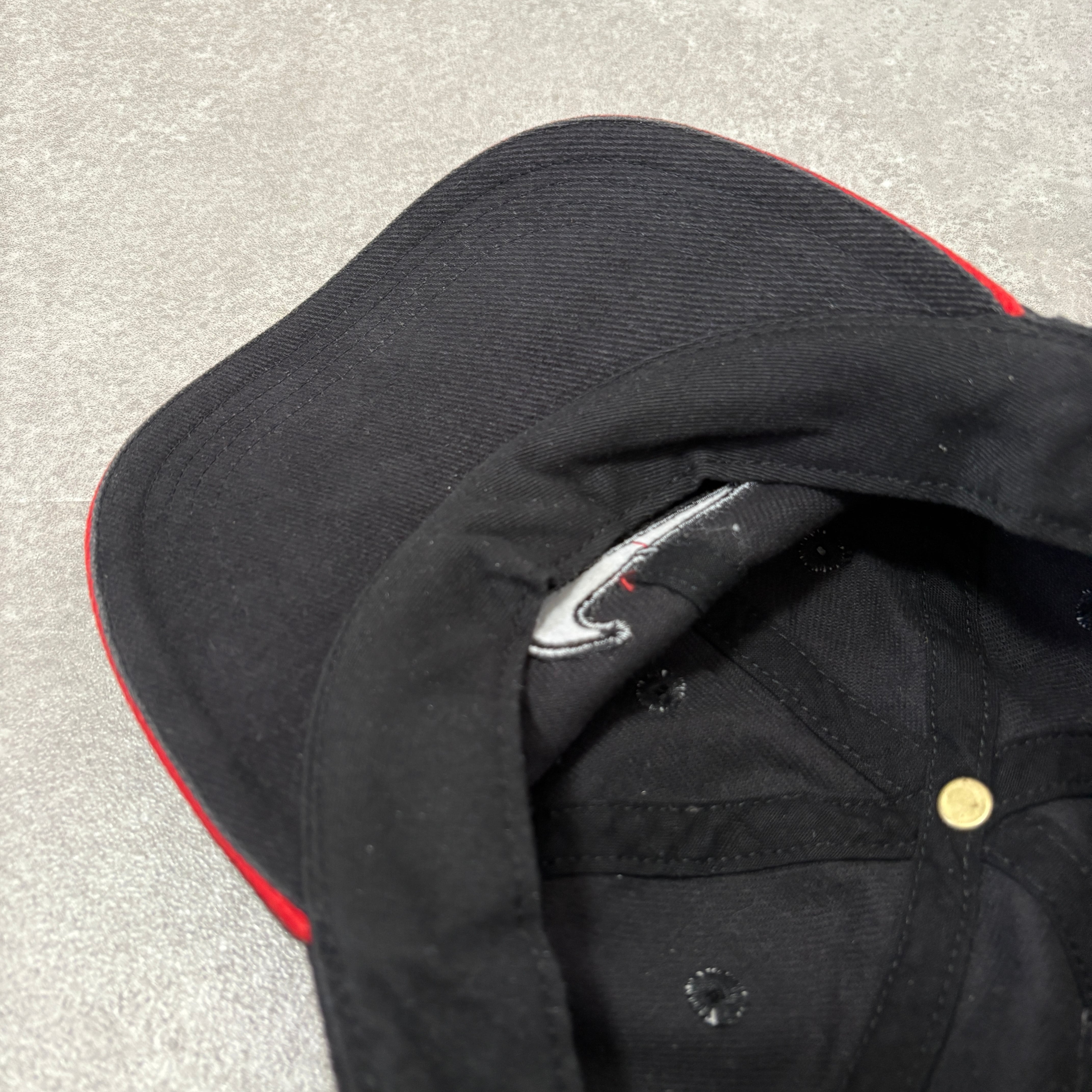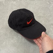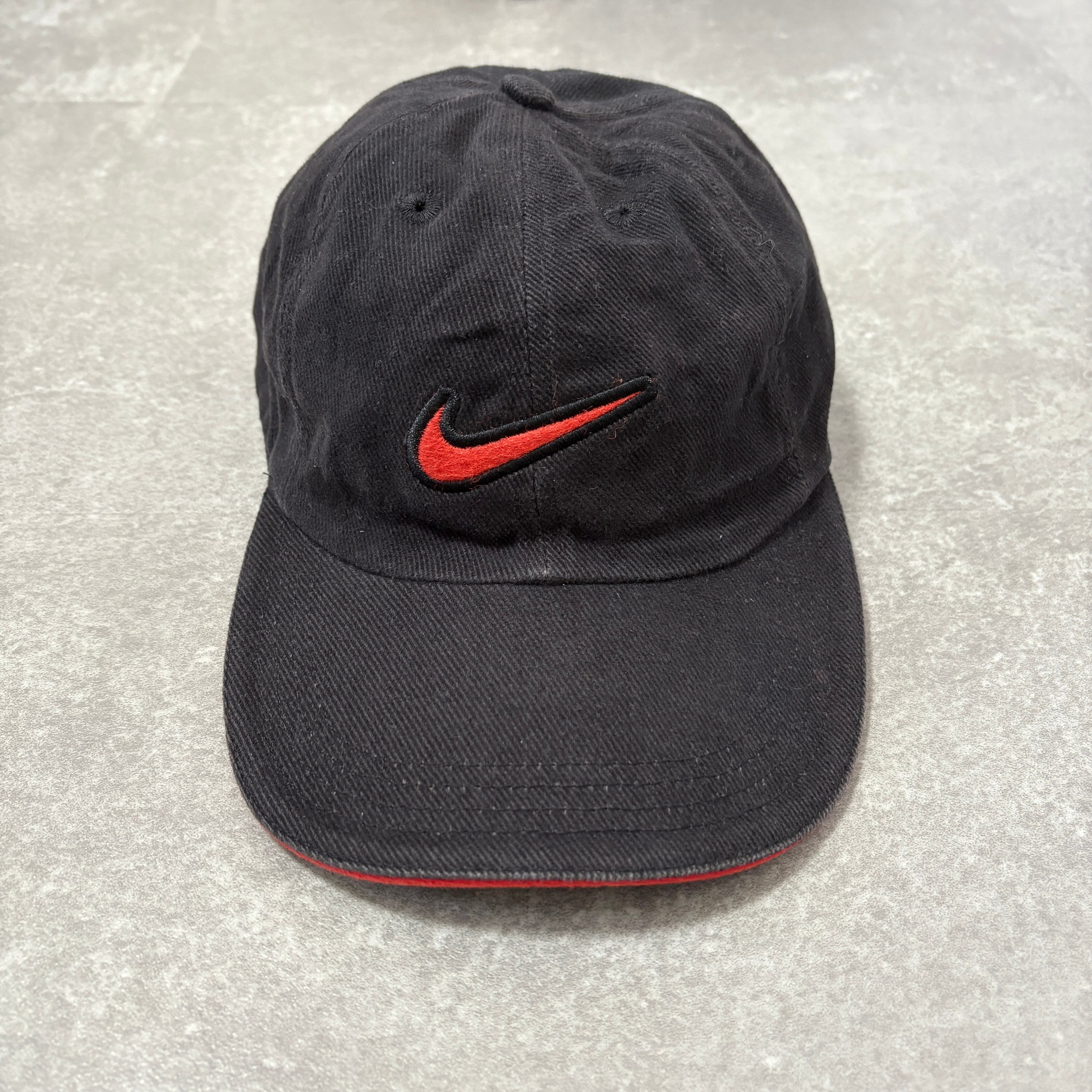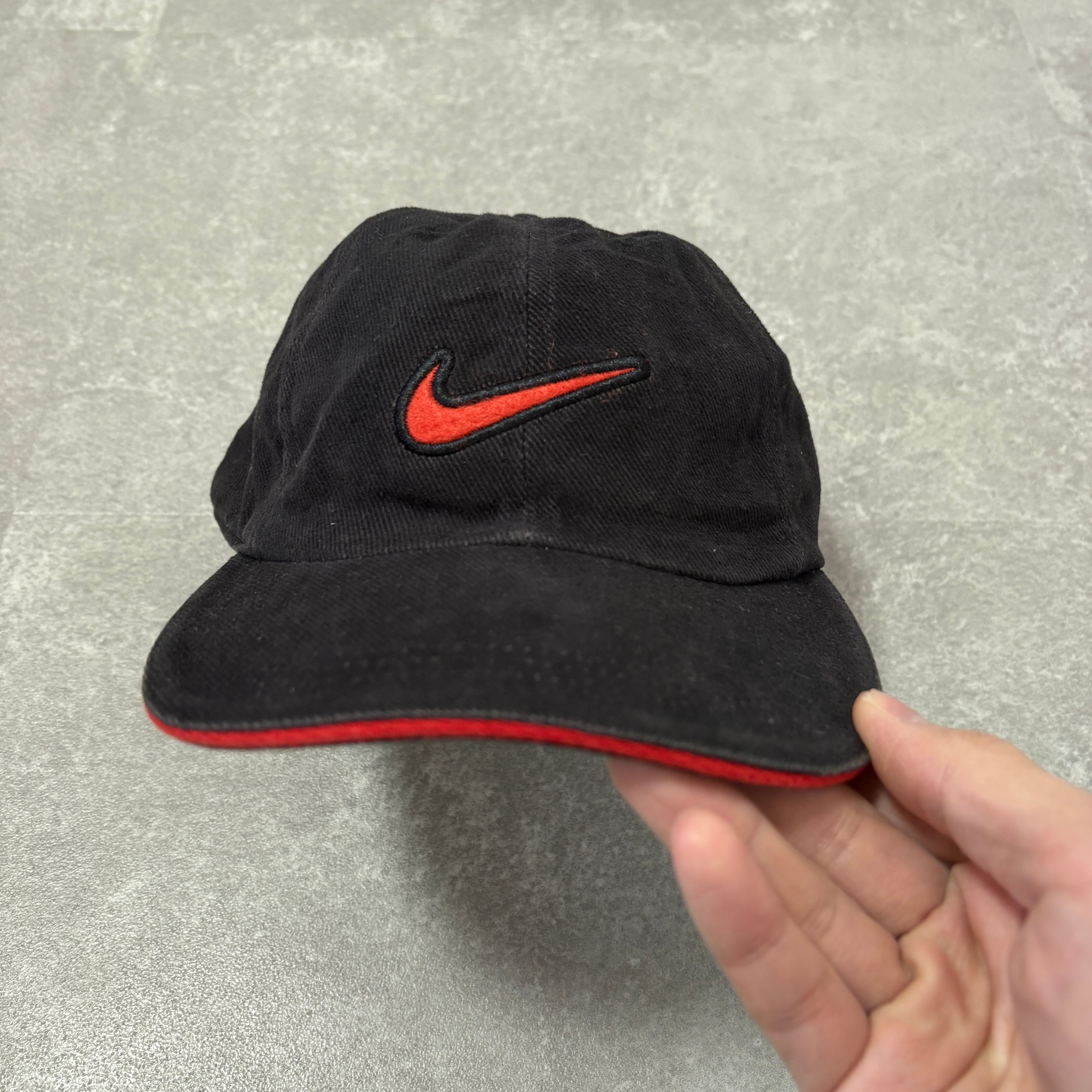 フロントには人気の高いスモールスウッシュが赤の刺繍で施されており、バイザー(つば)の縁に赤いラインが入る「サンドイッチブリム」仕様が、当時のスポーツラインらしい良いアクセントになっています