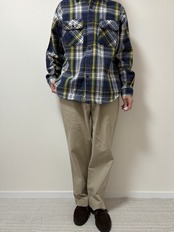 ノータック仕様で34×28のサイズですので、ツータックよりも腰回りはすっきりながら、Preston Pantの太めのシルエットを楽しんでいただくには、良い条件かと思います