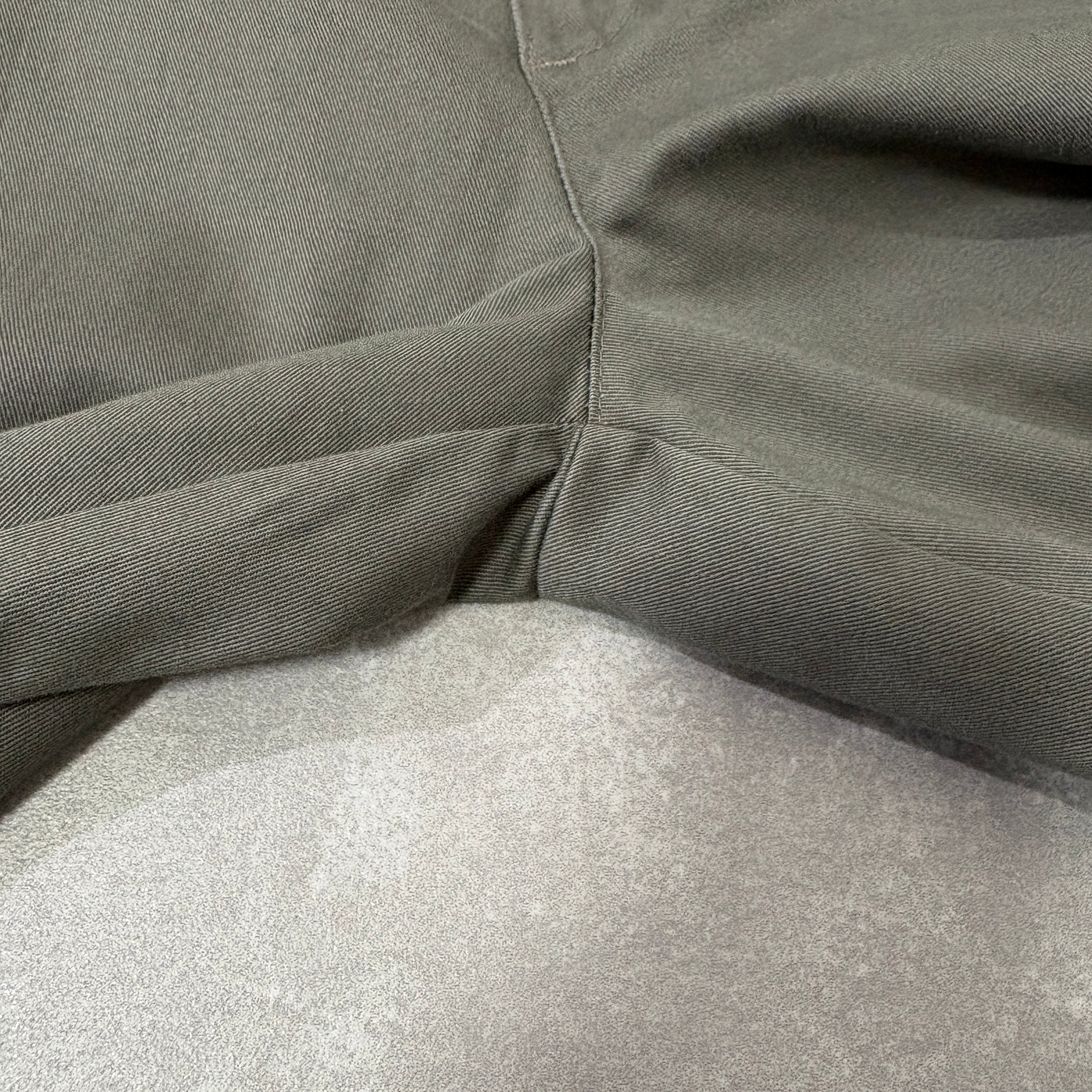カラーはオリーブで、履きこまれしっとりとしたコットン由来の滑らかな質感