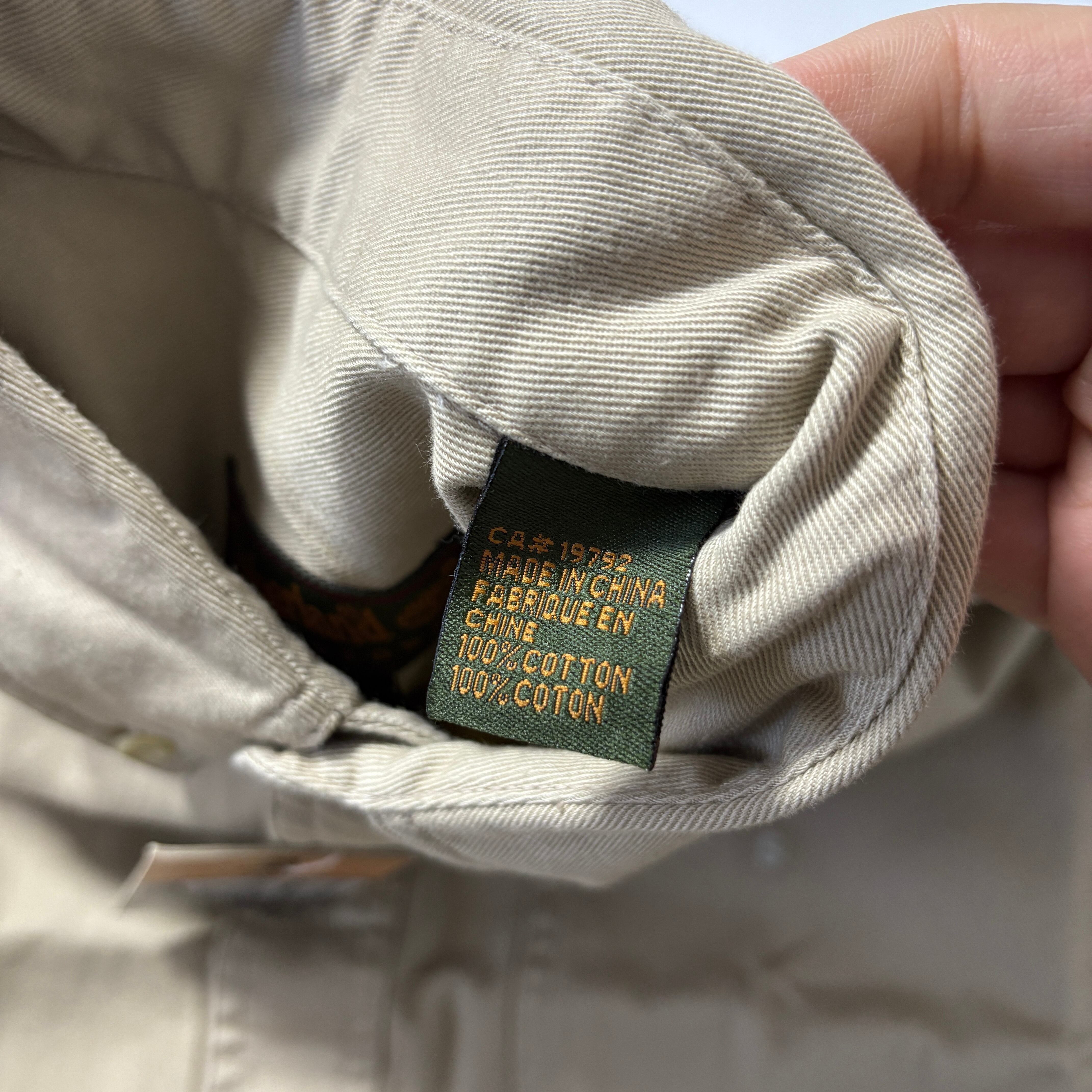 コットン100%のしっかりとした生地感、カラーは王道で定番のタン、サイズもアメリカ古着ではもはや希少なSサイズ