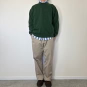 気兼ねなく着用できるカジュアルスウェットの王道ですが、インナーにシャツを持って来ると少しナードでトラッドな雰囲気も出てくれます、グリーンを選択するというのもなんだか洒落ていてお勧めです