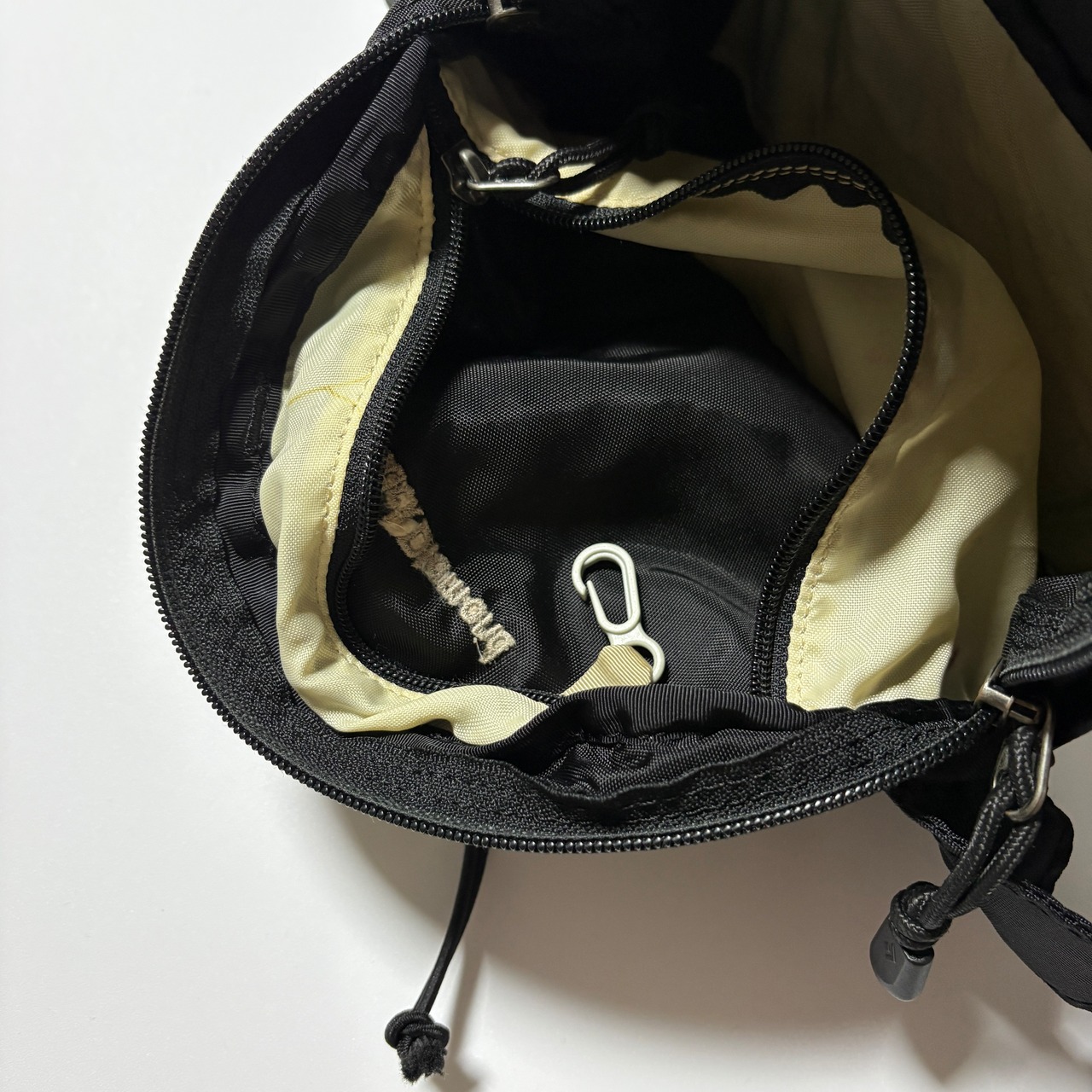 内側にはポケットが1つ、その中にキーストラップが付属します、ベルトにはコンプレッションベルトが備わっていますので荷物量によってフィット感を調整していただけます
