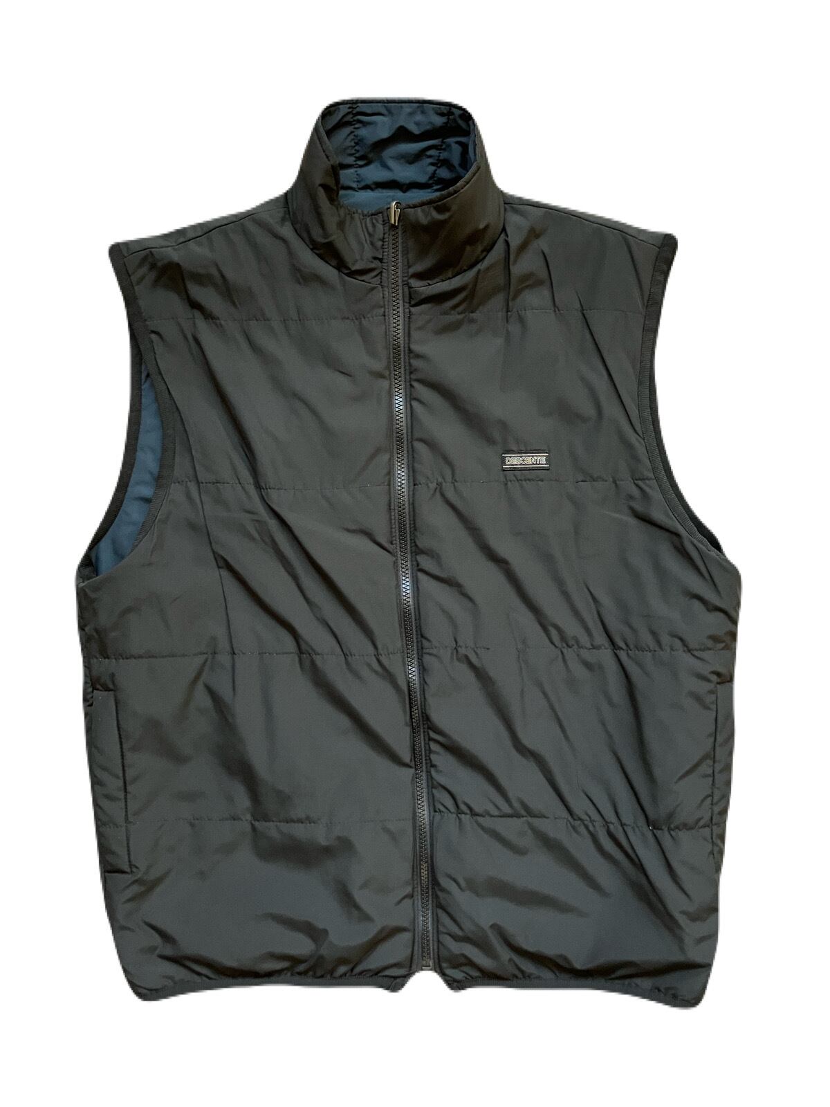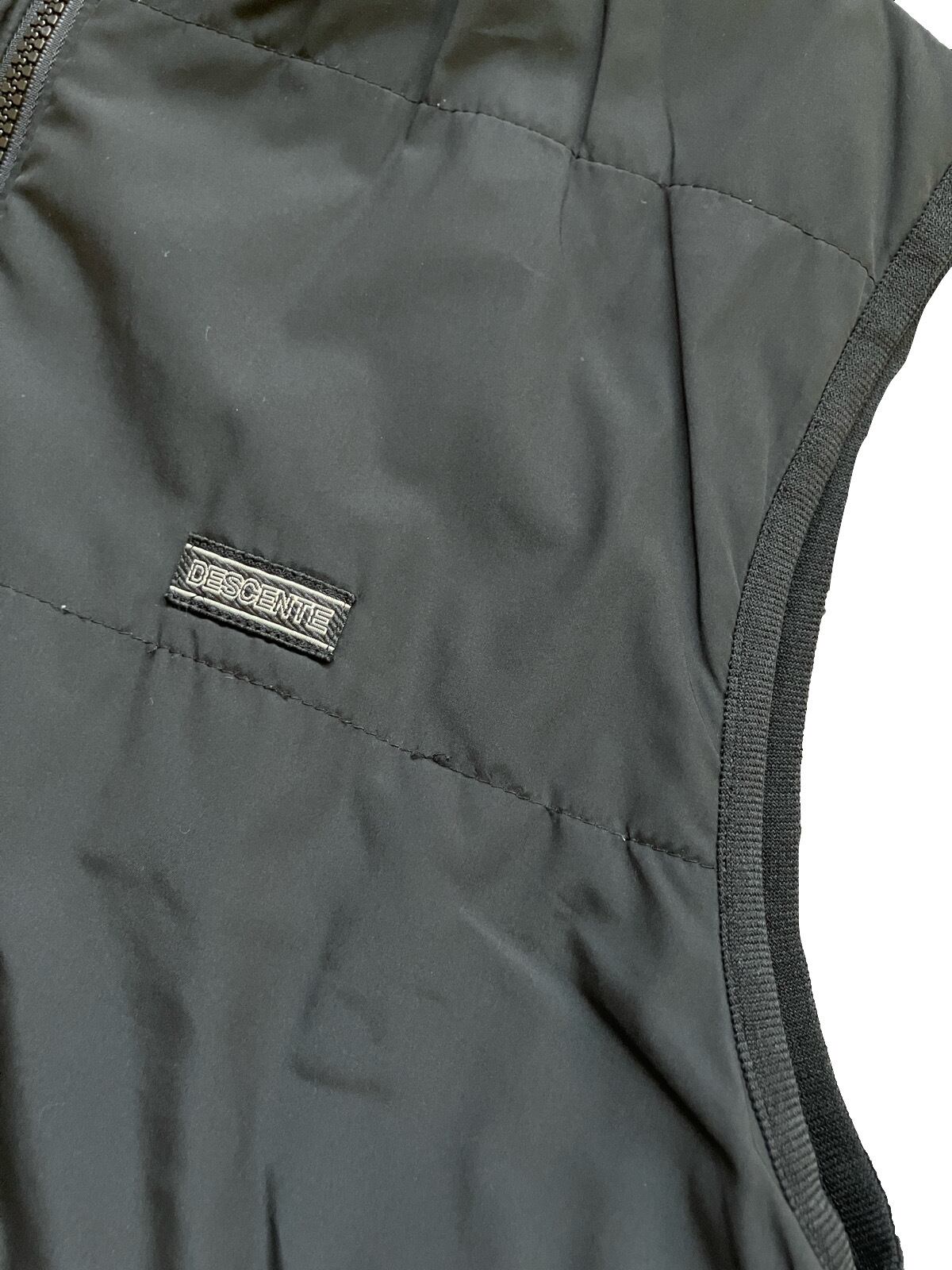 渋い1着です。DESCENTE GOLF リバーシブルベスト。中綿ですが、とても軽量で着心地も抜群です。また、胸ポケット、ハンドウォーマーポケット、機能性も十分です。サイズSですが、Mサイズほどあり、タイト過ぎずオーバーサイズ過ぎないパターンも魅力です。