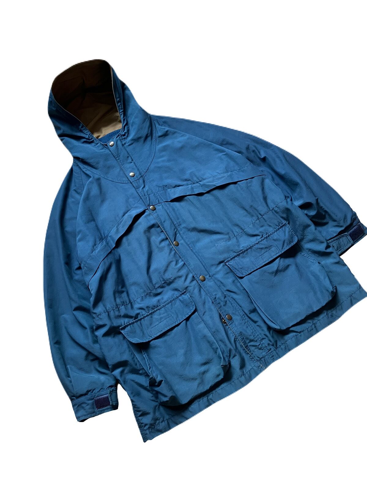 店主のお気に入りポイントは、斜めに切り取られたポケット。この手のマウンテンパーカーは四つのポケットが付いていて、縦か横からのアクセスしか出来ないのですが、こちらは手を突っ込み易い斜め仕様なんです。
