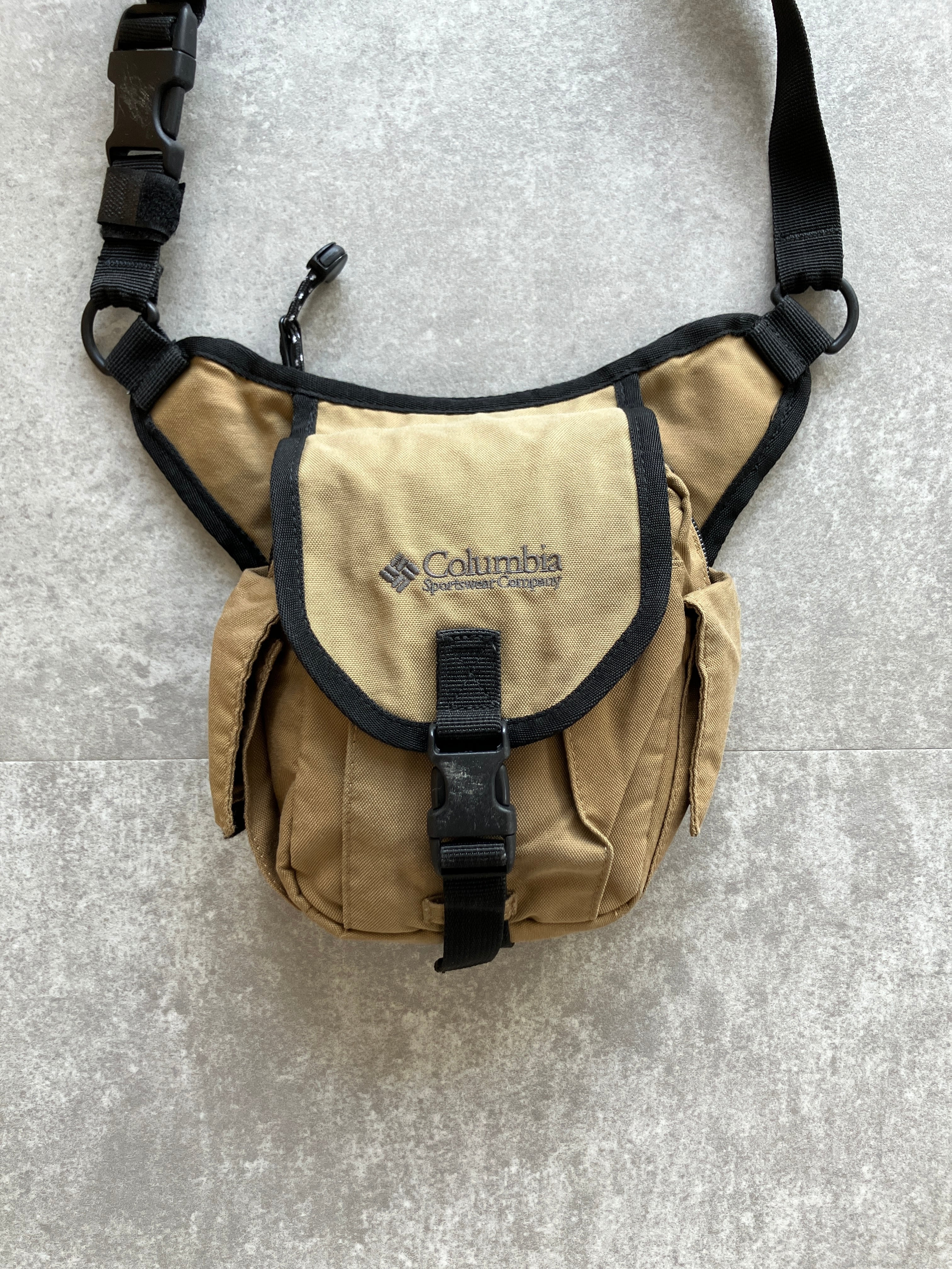 こちらは、コロンと可愛らしいコロンビアのショルダーバッグです。あまり見かけないデザイン・形なのと、コヨーテカラーが良い雰囲気です。