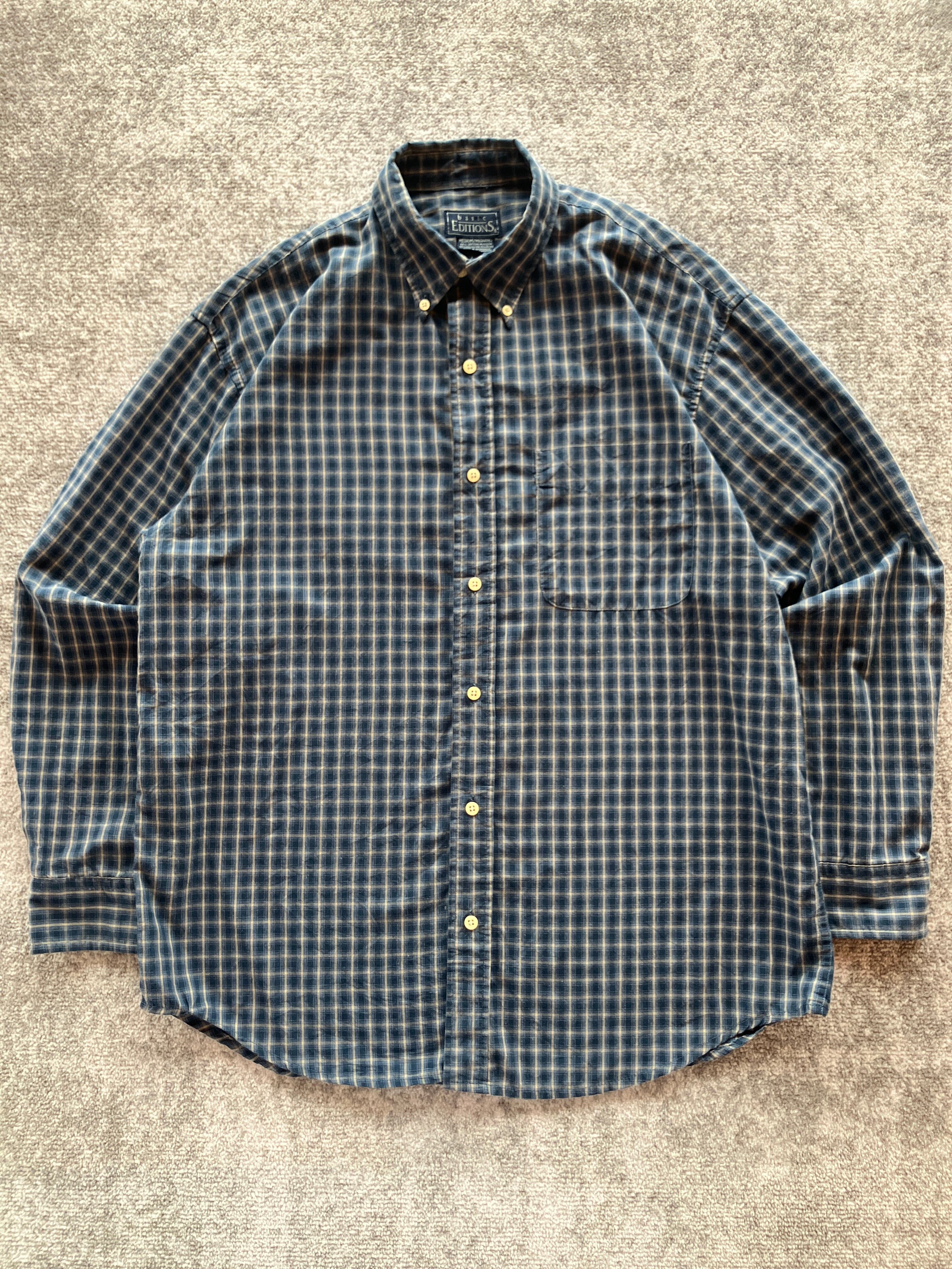 古着ではお馴染みのBASIC EDITIONのシャツが入荷です。細かい格子のシャドウチェックがめちゃくちゃ気に入ってます。