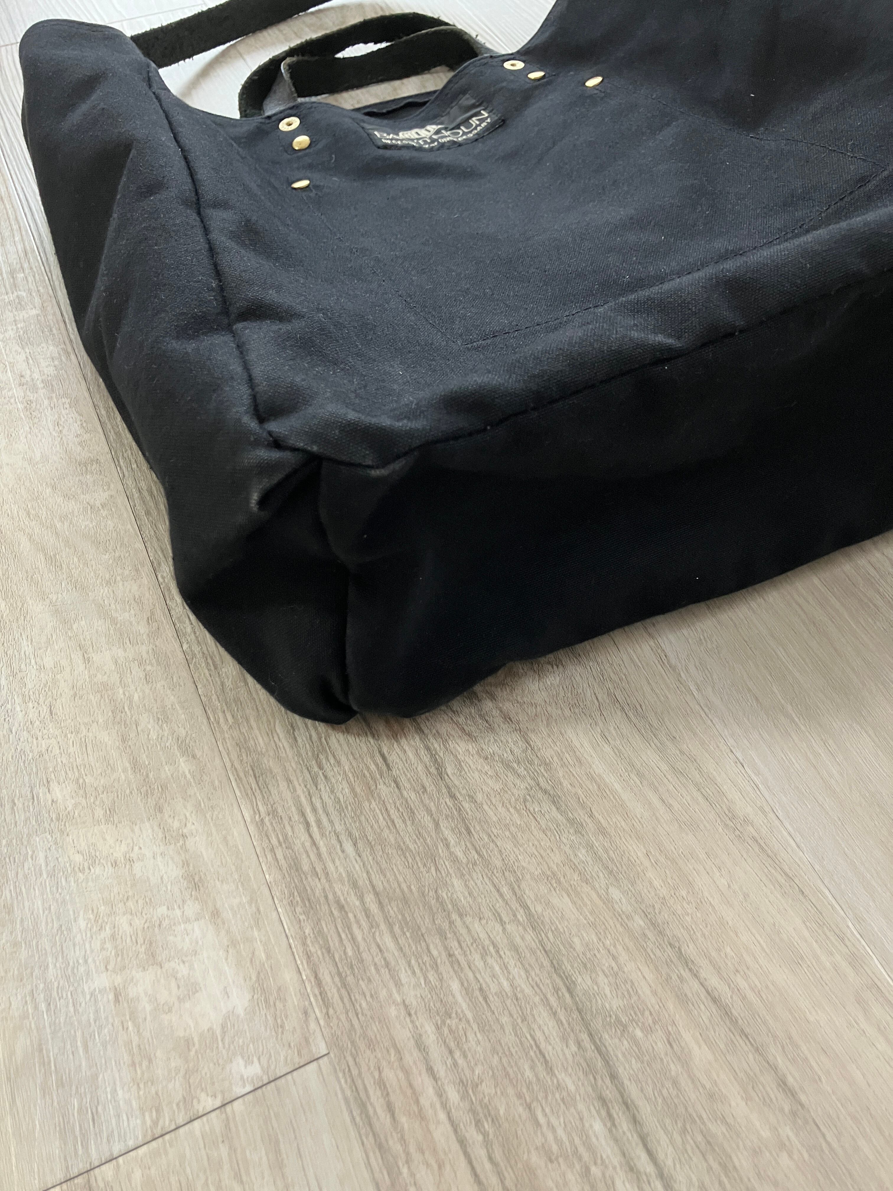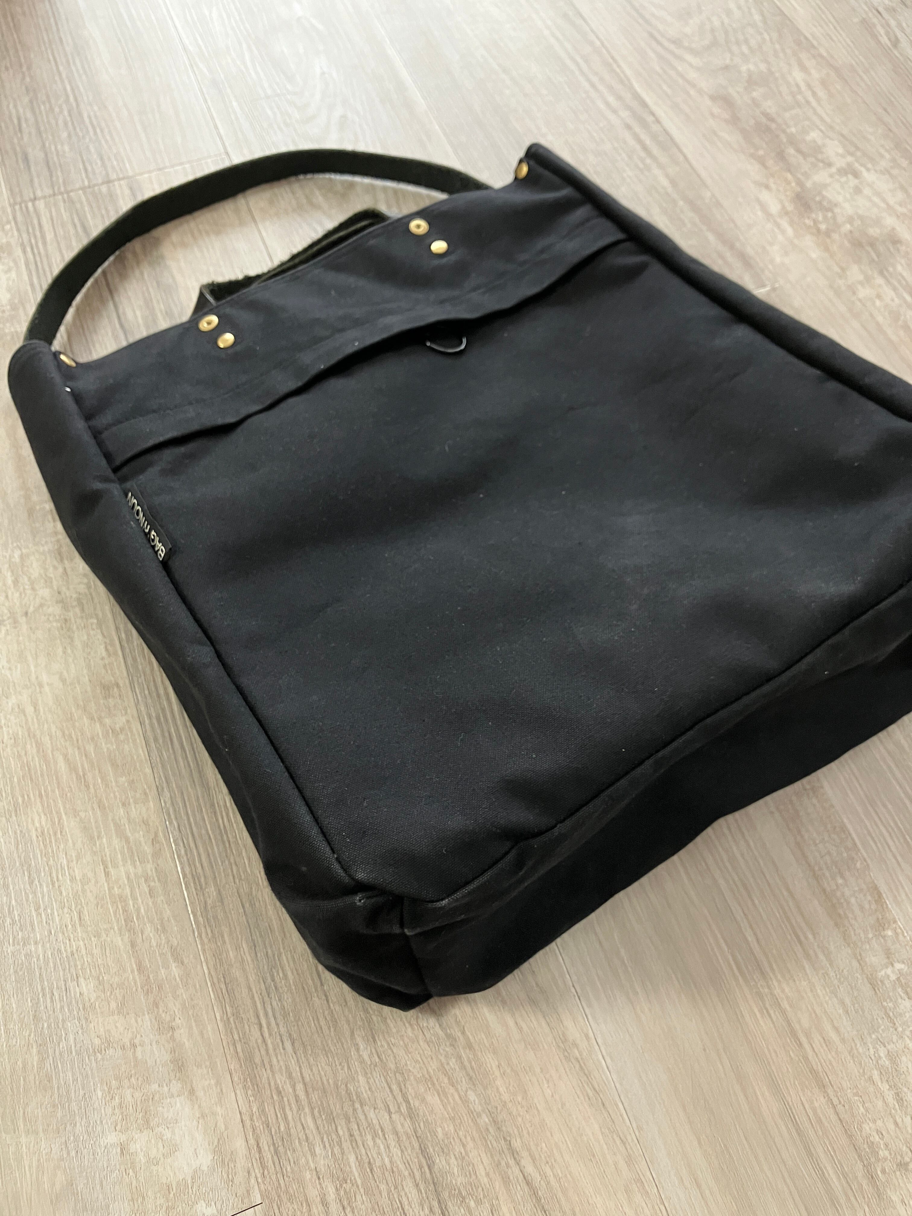 手持ちと肩掛けの2WAYで、持った時に身体の高い位置にくるようにストラップは短めに設計されていて、これがまた持ちやすいです。また、折りたたみ傘やペットボトルがすっぽりと収まる両サイドのポケットもとてもありがたい。ナイロン製もありますが、当店は断然コットン派です。是非ガシガシ使って洗って経年変化を楽しんでください。写真にあるように、中に物を入れて無くても立ちますので、ビジネスシーンなどある程度かしこまったシーンにも違和感なく使えるかなと、その辺りの振り幅の広さも含めて、オススメです。