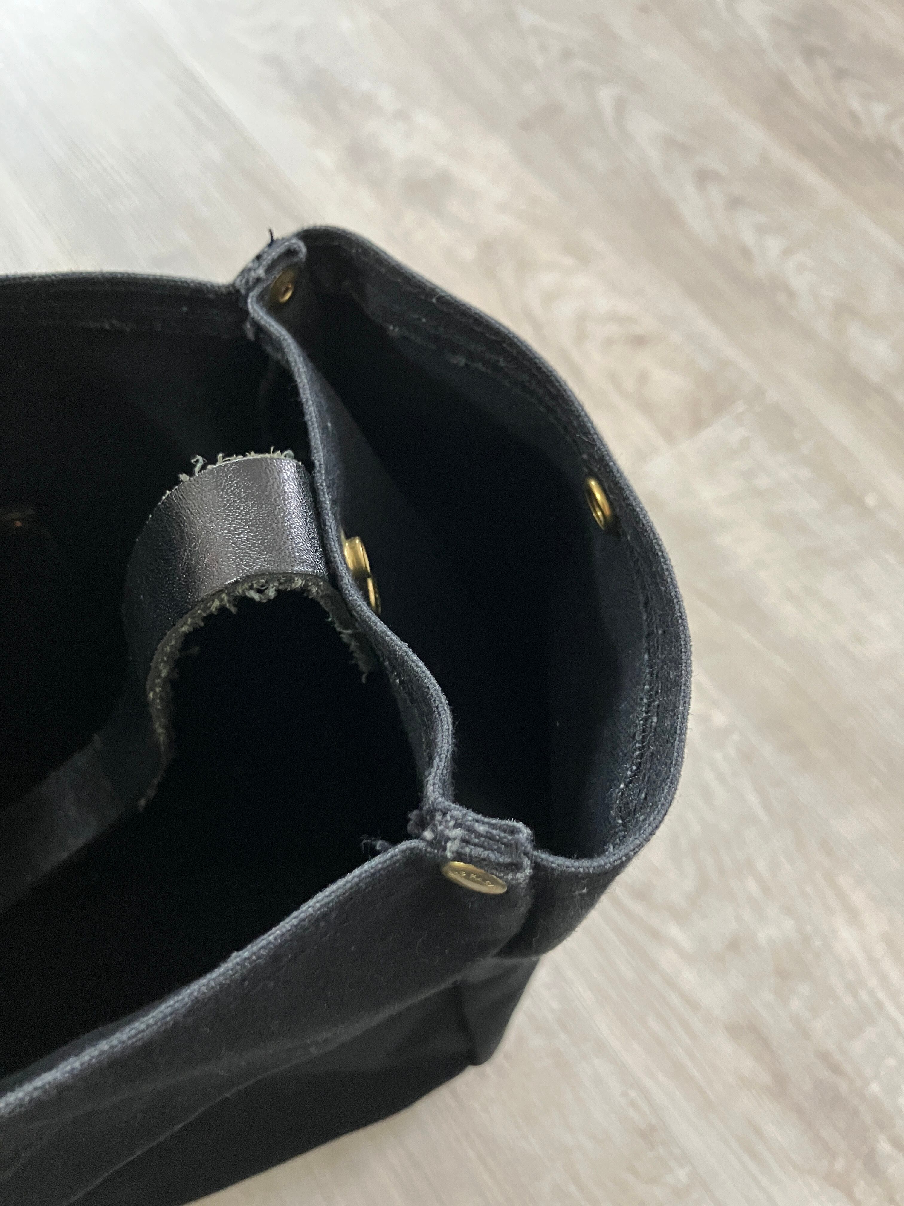 状態:取手のレザーに多少使用感あり。本体底も少しあたりがでてますが、目立つ汚れや傷、シミは見受けられません