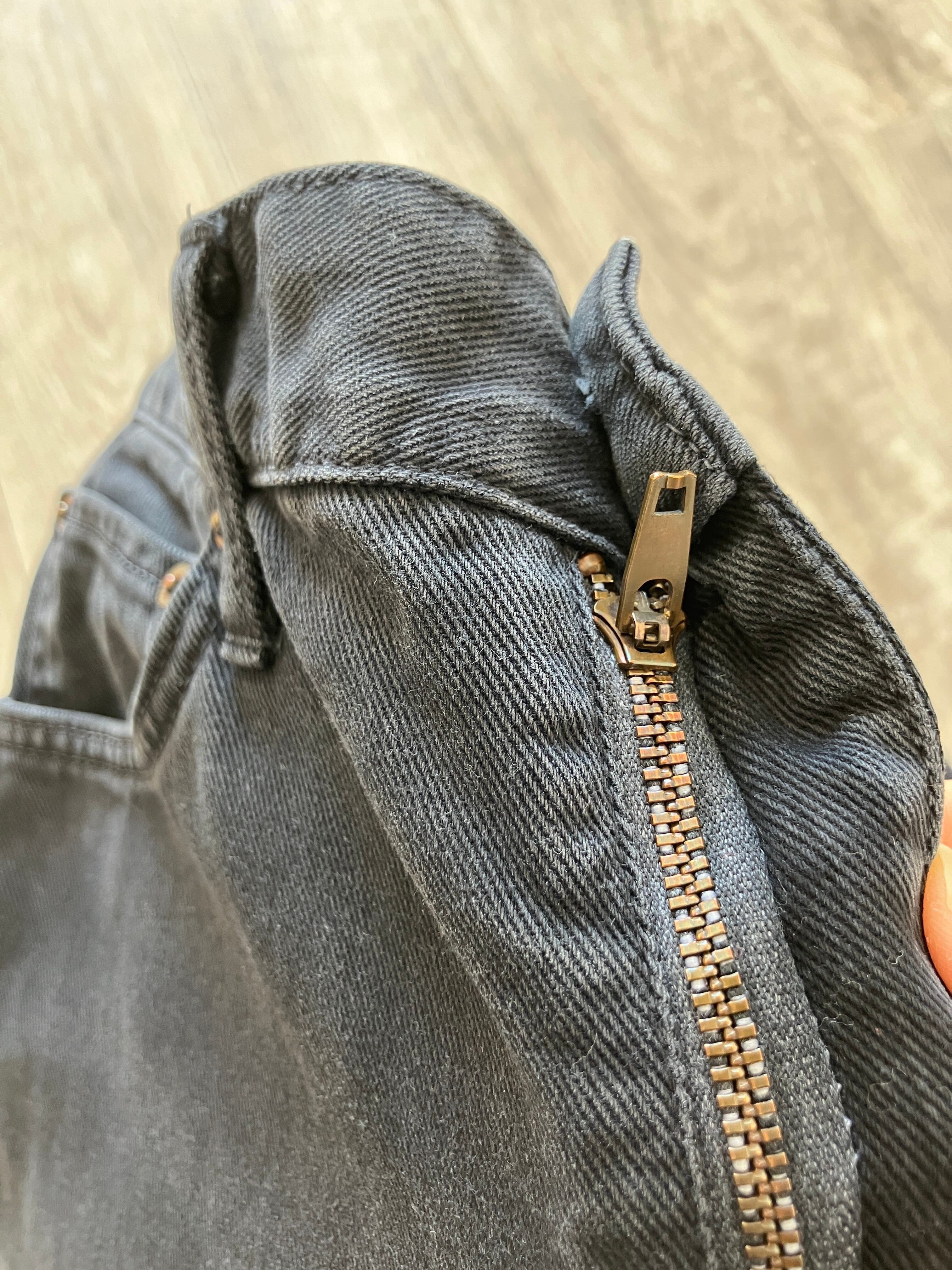 まさに炭黒のデニムと呼ぶに相応しいカラーリング。太過ぎないストレートラインも最高です。